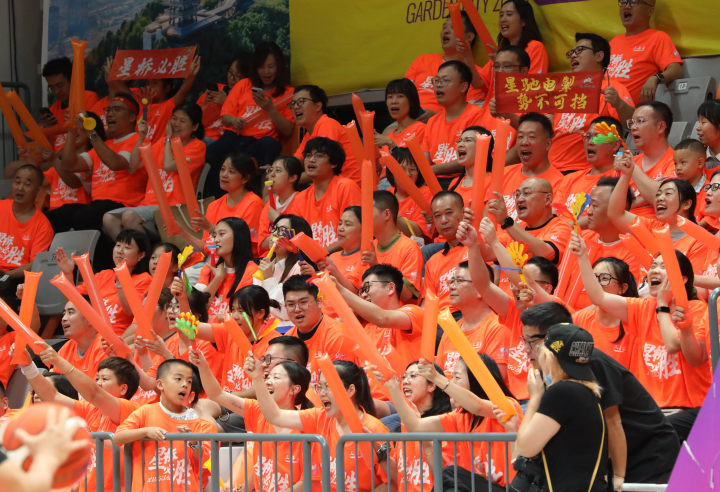 仅仅6分的差距,也让第四节比赛进入每球必争的肉搏战,飞身扑球、身体碰撞的激烈场面频频上演,比分也一度拉近到只差4分。“加油加油!”“防守防守!”场下球迷们也看得热血沸腾,许多人激动地站了起来,哪怕嗓子喊哑了都要为本队助威。