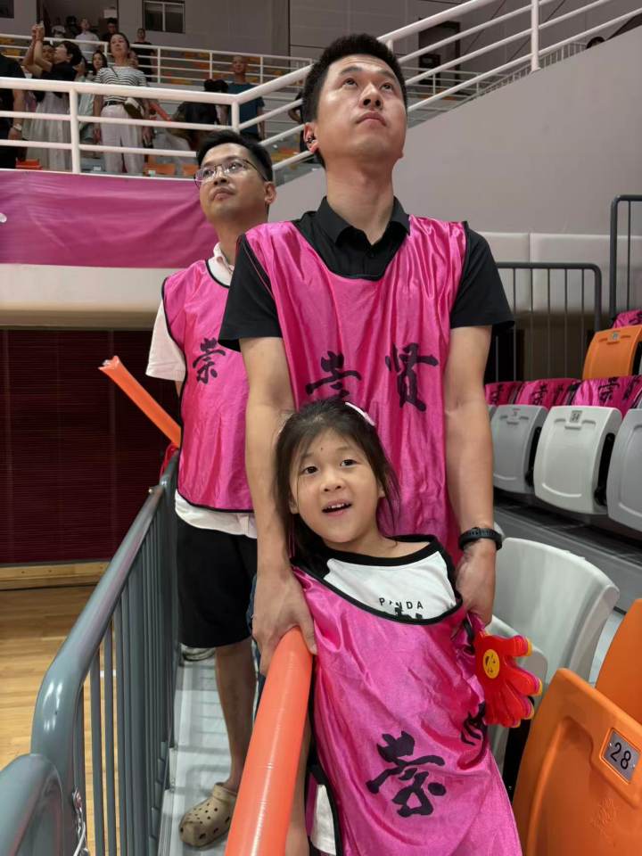 对面看台上,崇贤队球迷陈先生也带着7岁的女儿糖糖来为家乡球队呐喊助威。“‘临BA’能晋级半决赛的球队都不是鱼腩,我们也有信心拿下星桥队!喏,场上15号队员还是我同事,期待他有好的表现!”