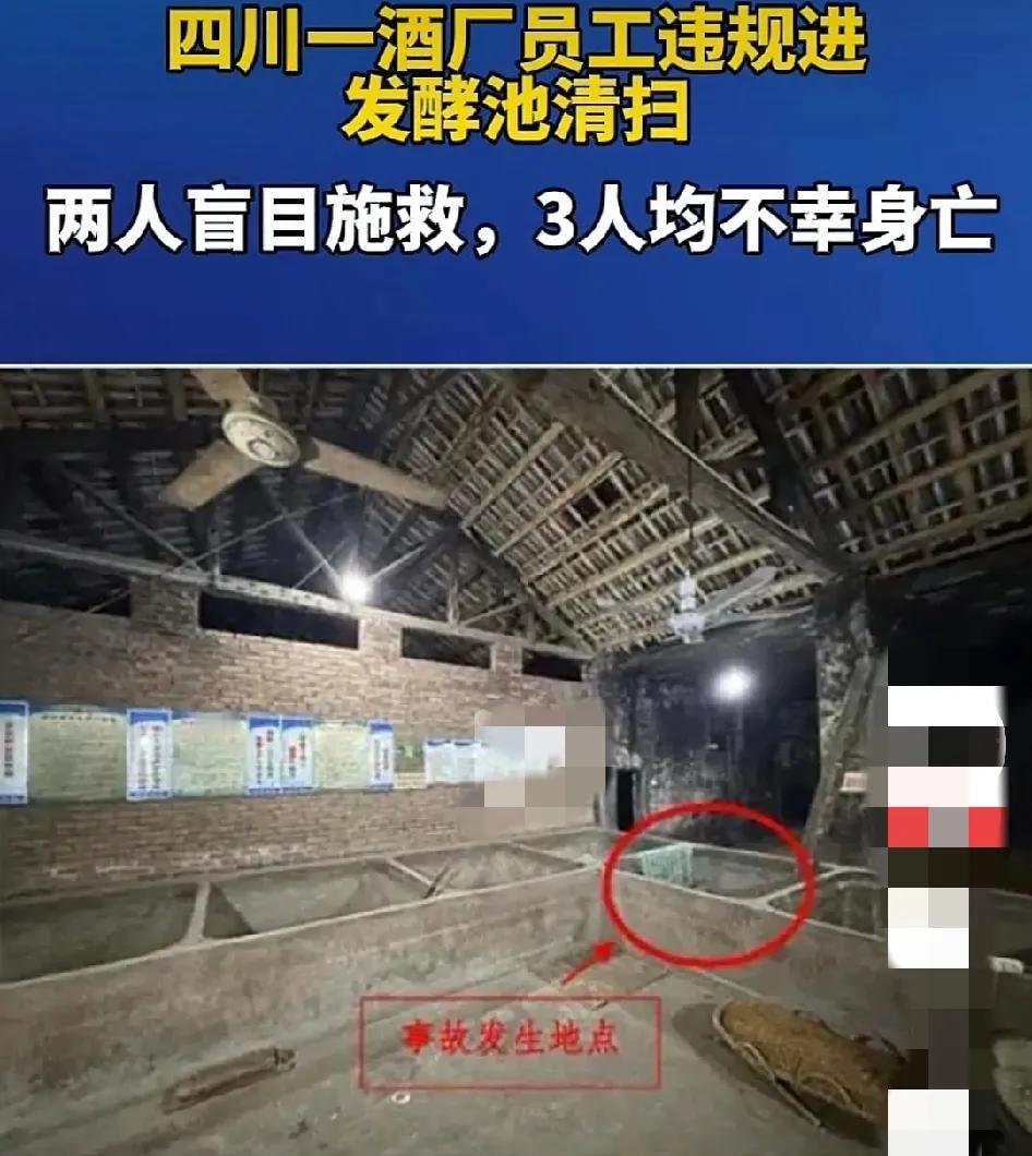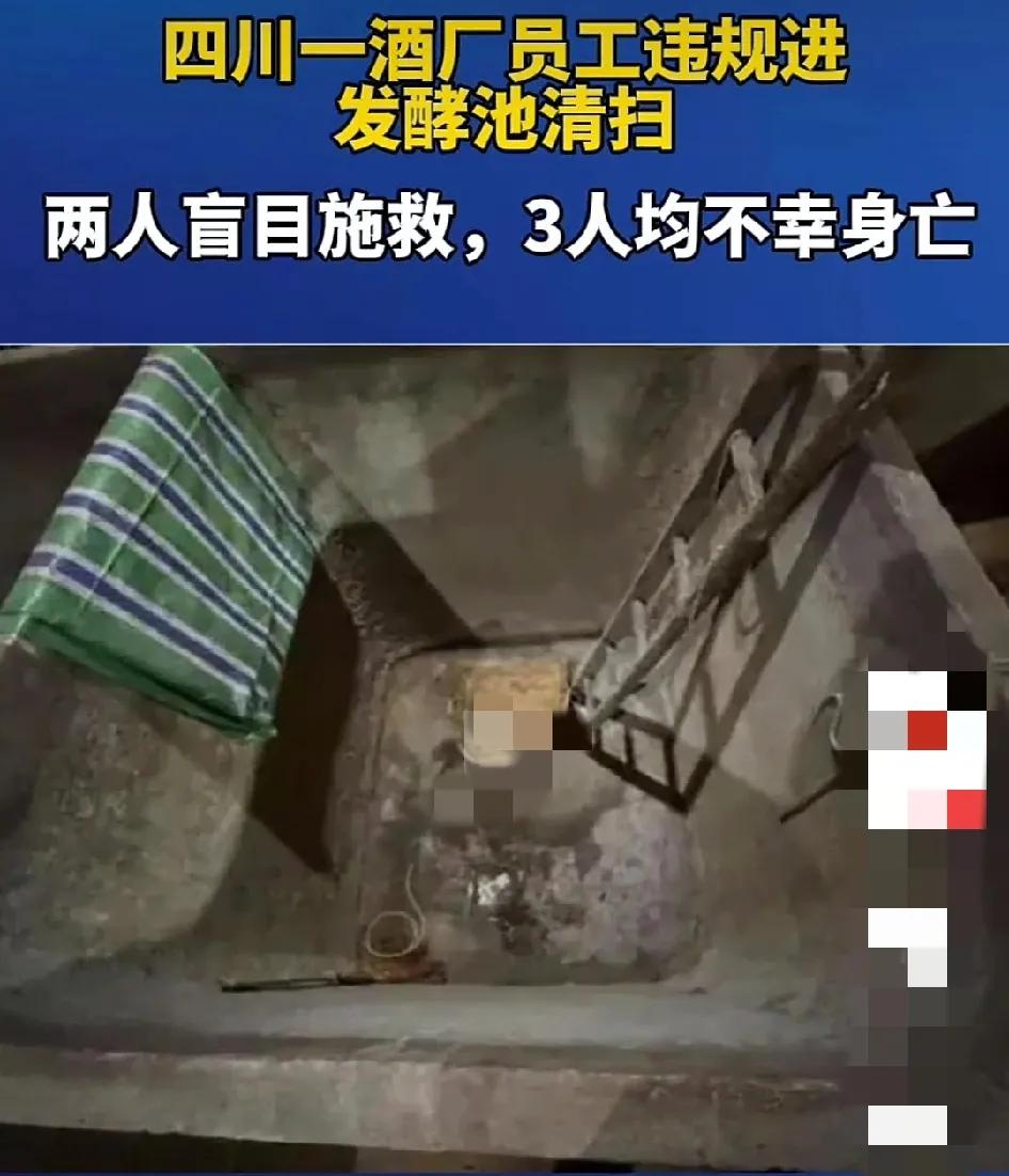 重大安全责任事故,安全生产,警钟长鸣啊!三条鲜活生命就这样去了!安全监督管理哪去了,隐患排查疏于流程。事故再次警示,有限空间作业需严格遵守通风检测、作业审批等规范,并加强应急救援培训。 据报道,2025年9月26日,四川自贡富顺县朝荣酒厂发生一起中毒和窒息事故,导致3人死亡。事故直接原因是酒厂停产期间未清理的发酵池因长时间未清理产生一氧化碳、二氧化碳等气体,导致底部形成缺氧环境。作业人员在未通风检测的情况下违规进入清扫,后续救援人员盲目施救进一步扩大事故。 另外,酒厂未建立有限空间作业台账、应急演练、作业审批制度,且未在发酵池设置安全警示标志。救援人员未佩戴防护设备、未掌握正确施救流程,导致事故扩大。 多次安全检查未发现相关风险隐患。