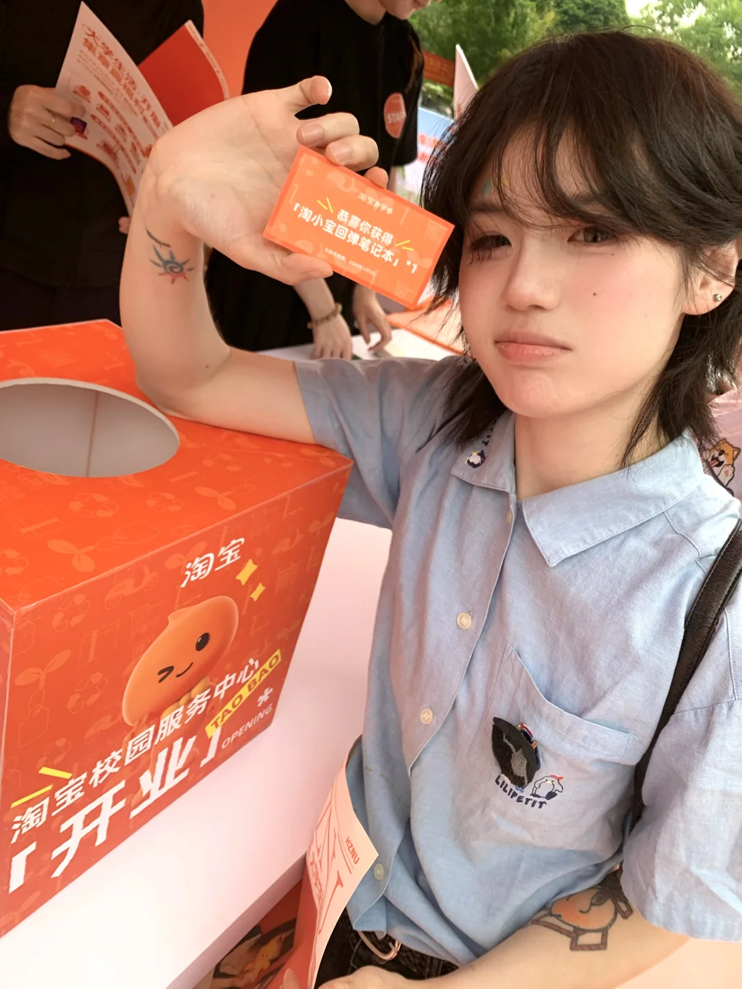 其实我是已毕业学姐咯,今天重返校园,和朋友一起来杭师大打卡淘宝校园服务中心开业快闪,嘻嘻冲着ipad来的,虽然没抽到但是中了一个萌萌笔记本!