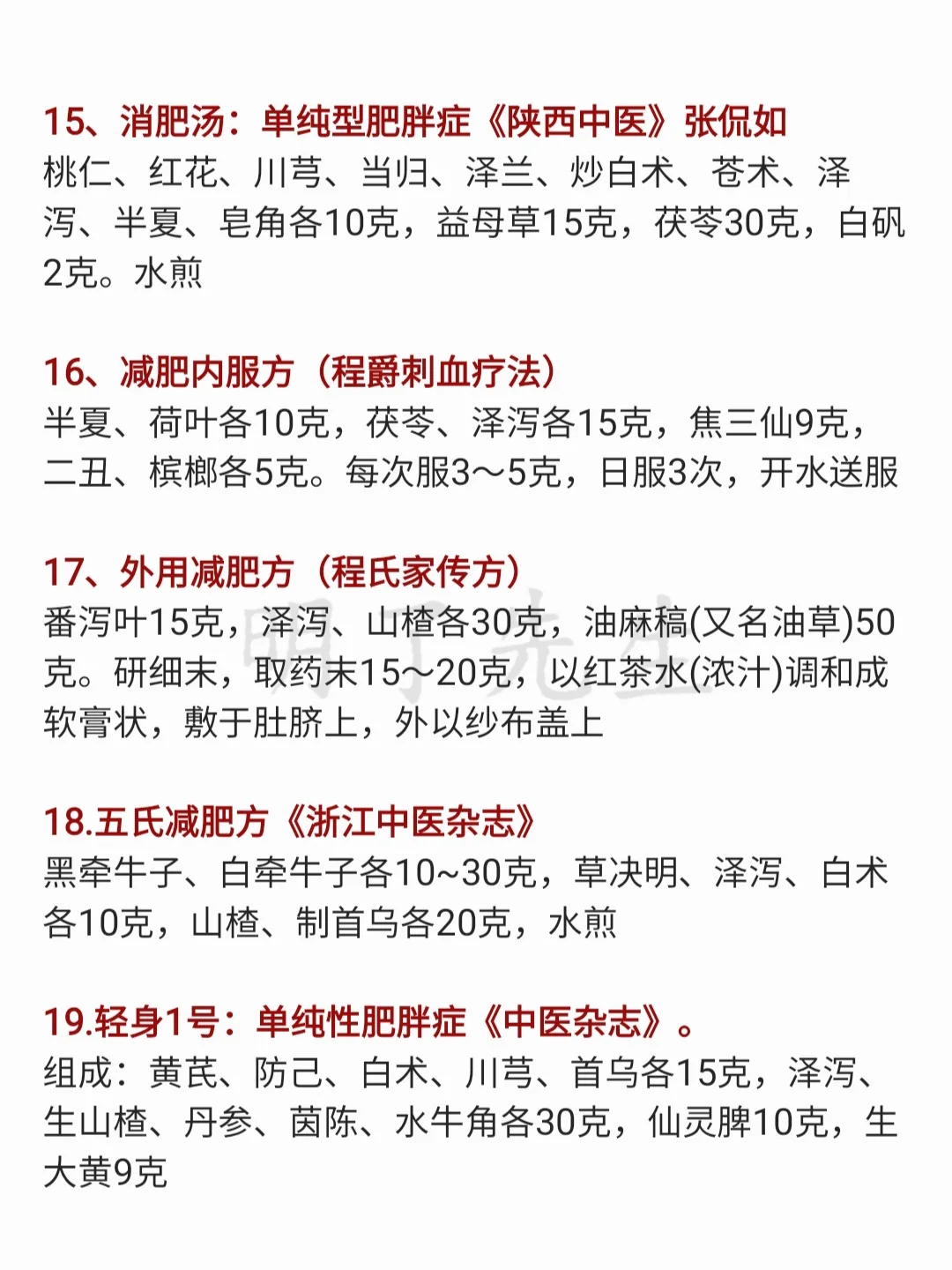 各中医院“减肥极简协定方",一文汇总❗