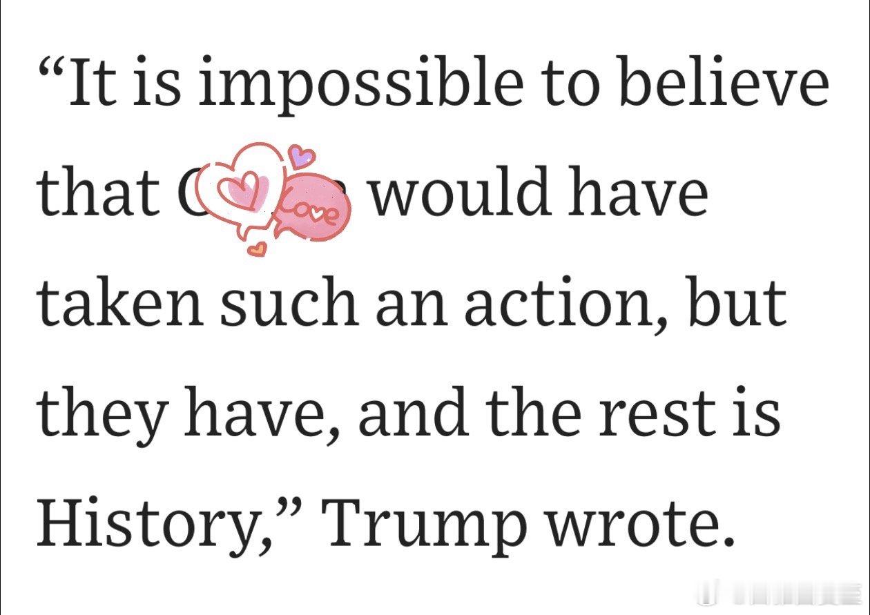 Trump在社媒:“简直无法相信他们会采取这种行动,但既然已经做了,接下来的事就很清楚了”