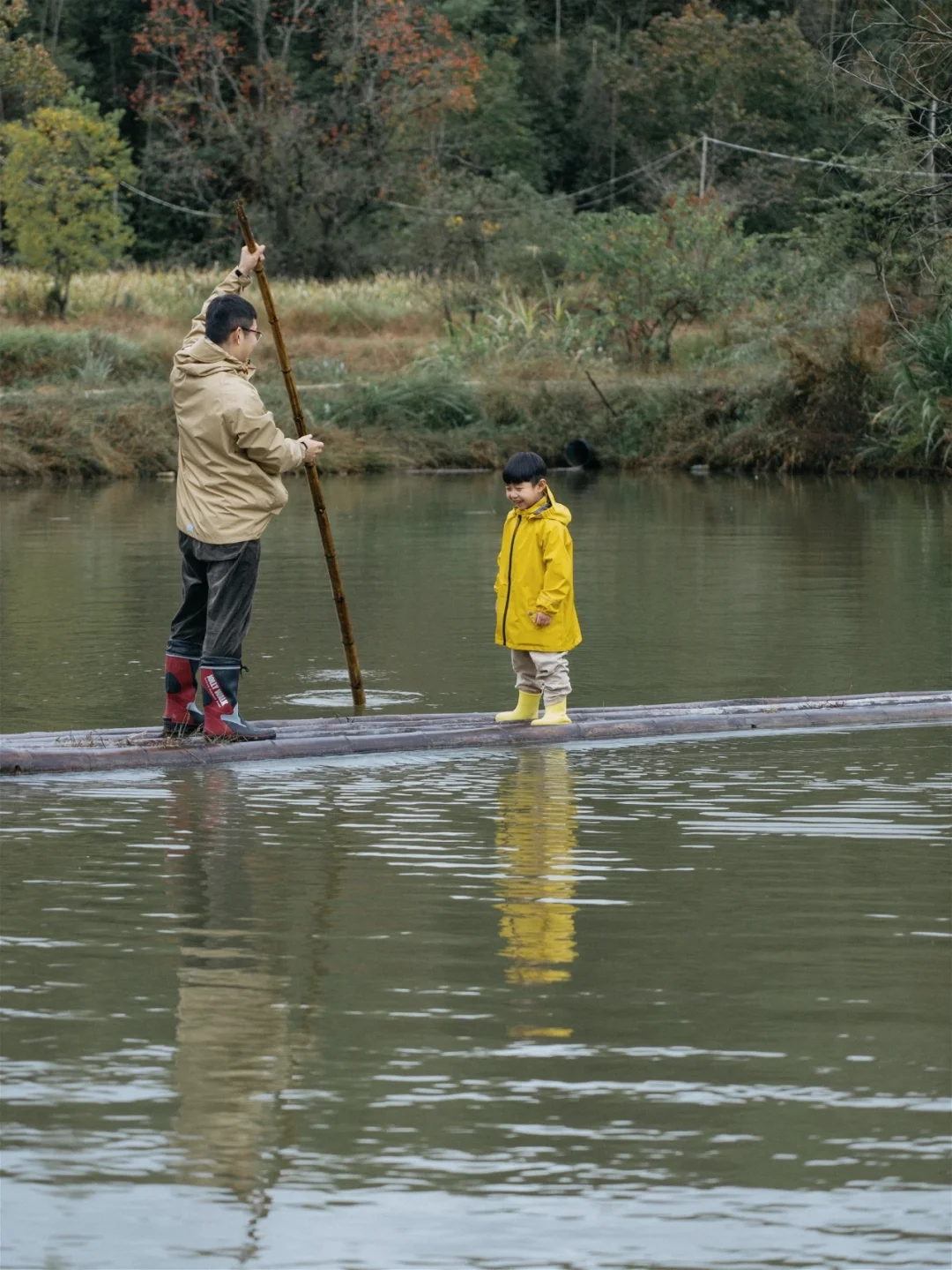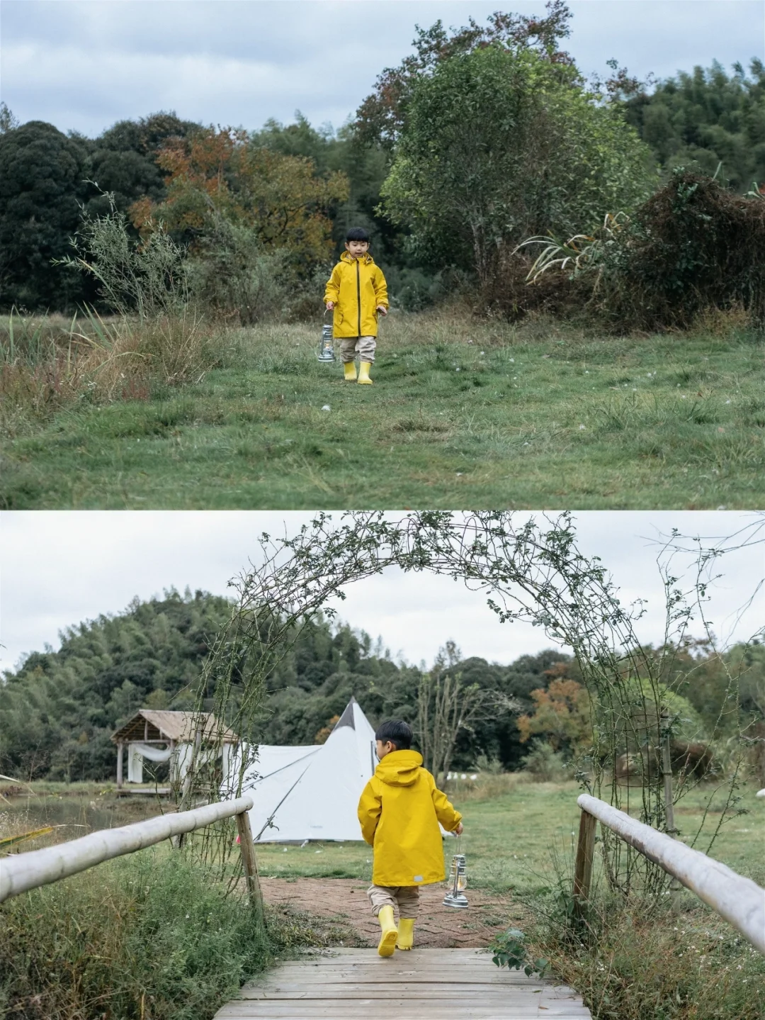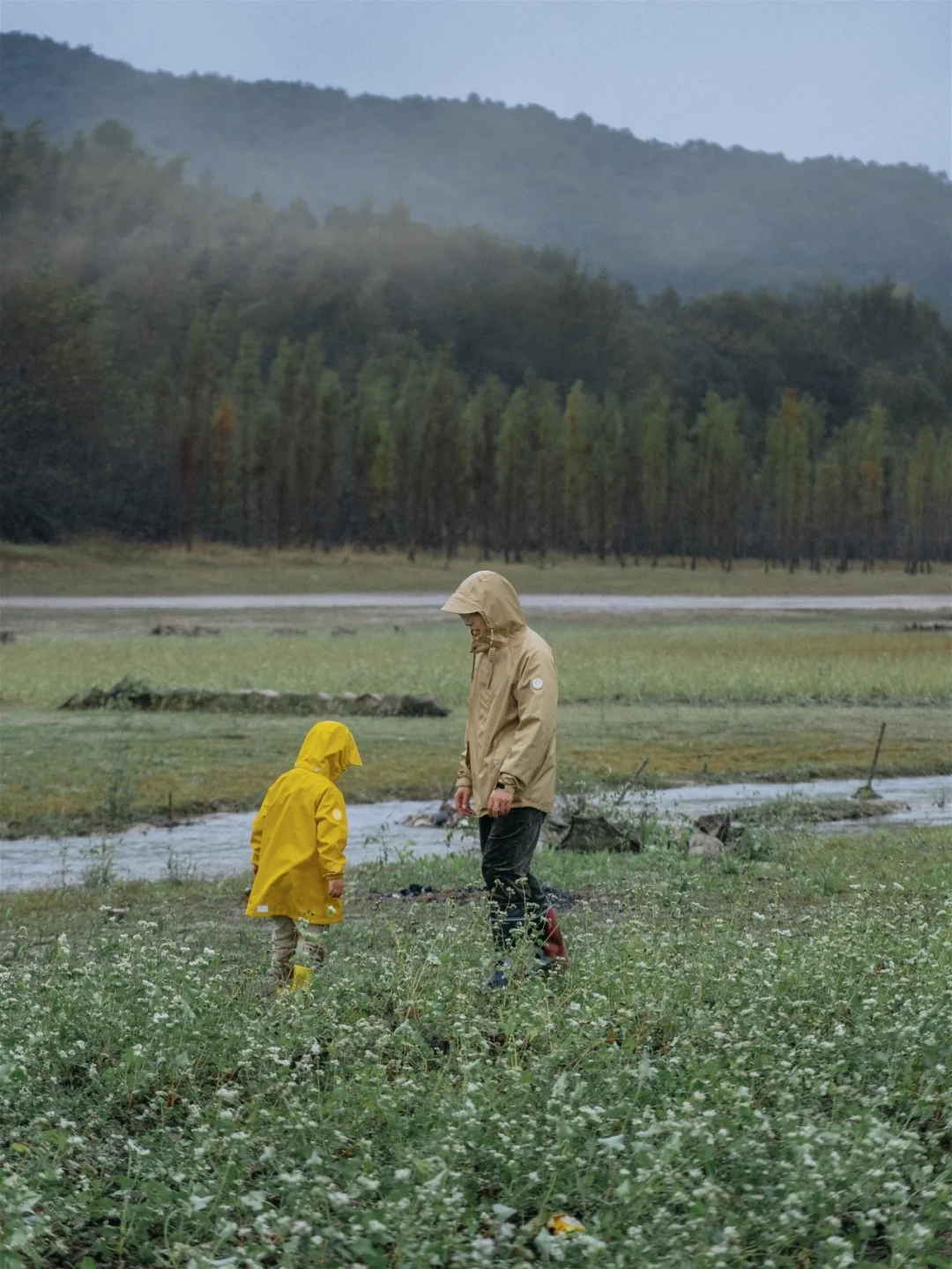 离这座村庄不远,有一大片秘境森林,雨天小小鱼和爸爸在这里尽情踩泥巴,体会小猪佩奇的快乐。
