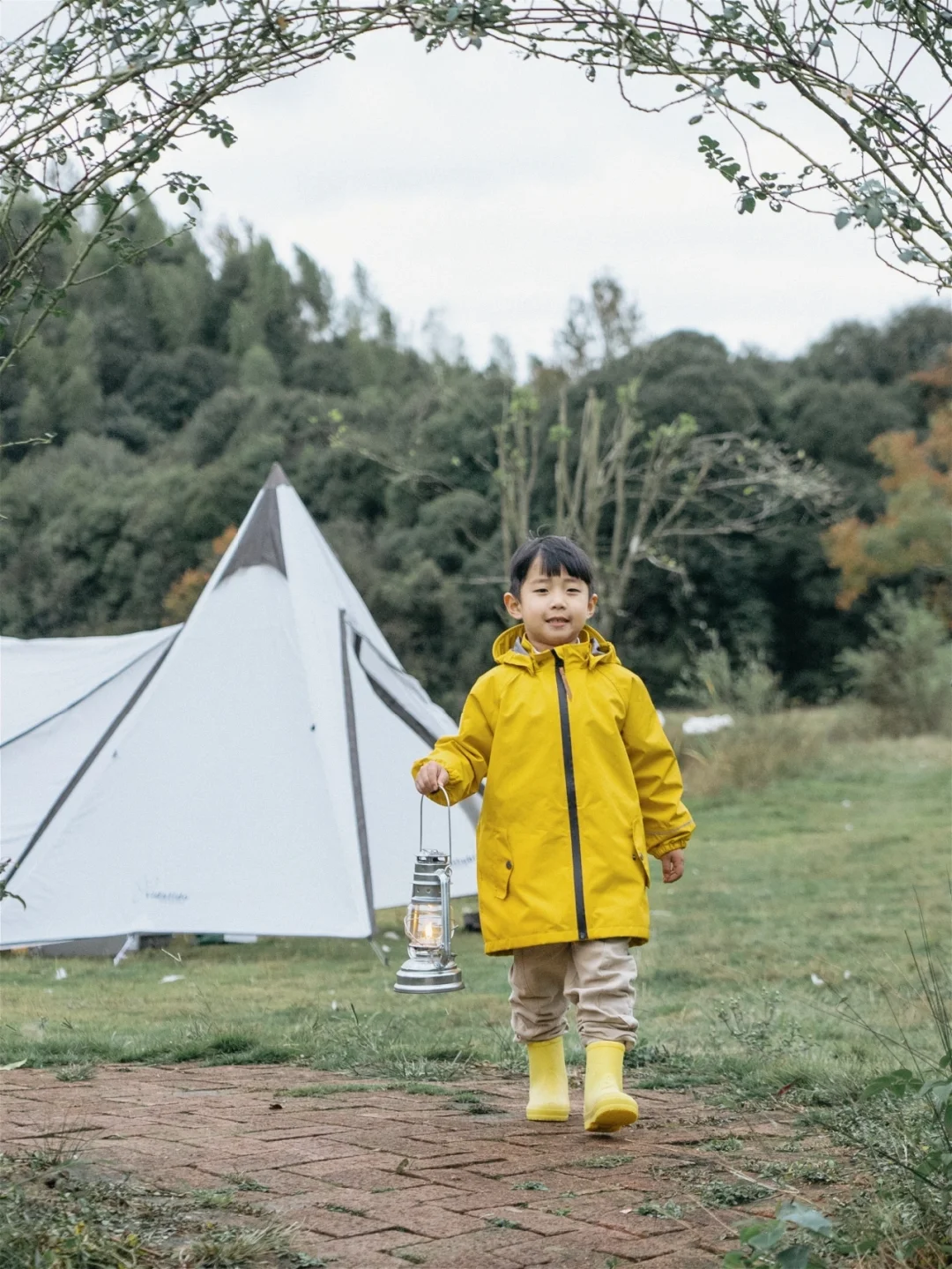 3⃣有一个简单的庇护所能更加全身心感受雨天。我们直接用的之前一个金字塔帐篷的外账,轻薄好携带,防雨防风效果都不错。