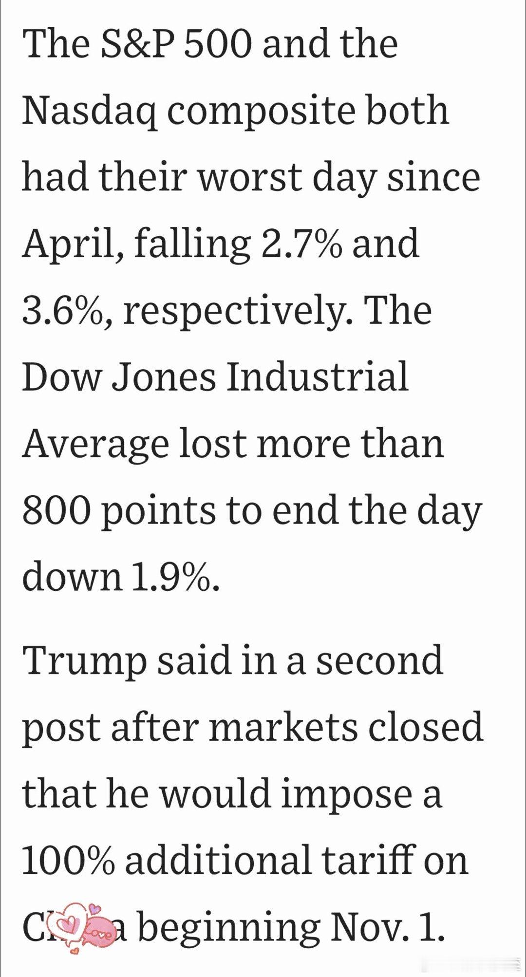 “11月1日起,关税➕100%”,是收盘后宣布的