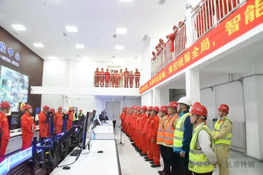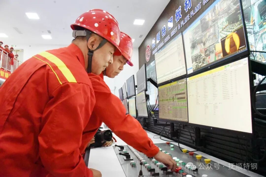 他说,就在刚才,我们共同见证了抚顺特钢发展史上一个里程碑式的时刻——国内首条智能化高合金板材生产线热负荷试车圆满成功!这不仅是一条生产线的成功,更是抚顺特钢积极响应“制造强国”战略,在中国特钢发展蓝图上挥就的浓重一笔!这条生产线的成功,标志着我们正式迈入了“智造”新时代。它用“大数据”的智慧取代了传统的“人机对话”,用“集中控制”的精准重构了生产的全流程。从此,“无人化”制造从蓝图走进现实。这不仅仅是效率的跃升、品质的变革,更是我们面向未来竞争,构筑核心优势的坚实底座。我们攻克的不只是技术难关,更是传统生产模式的壁垒,为中国高合金板材的“高质量、高精度、高稳定性”树立了全新的行业标杆。
