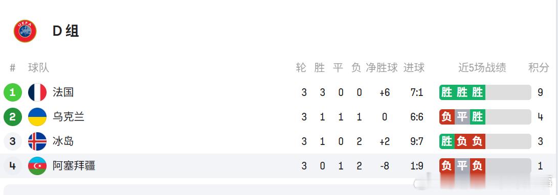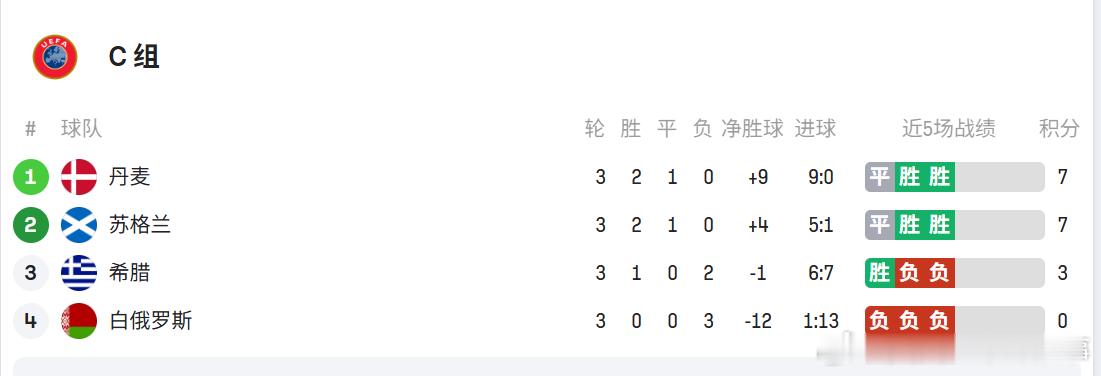 世预赛欧洲区第3轮过后积分榜↓