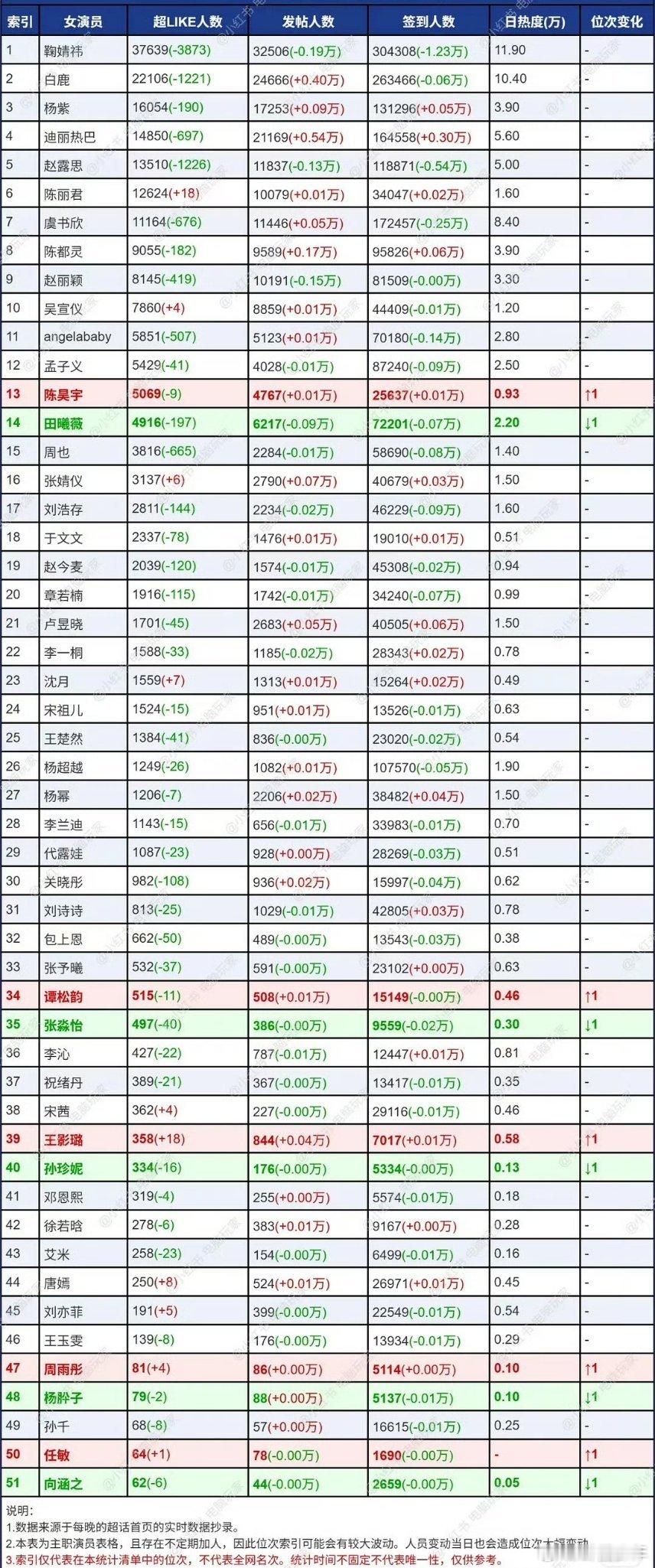 女明星TOP10 : 鞠婧祎,白鹿,杨紫,迪丽热巴,赵露思,陈丽君,虞书欣,陈都灵,赵丽颖,吴宣仪