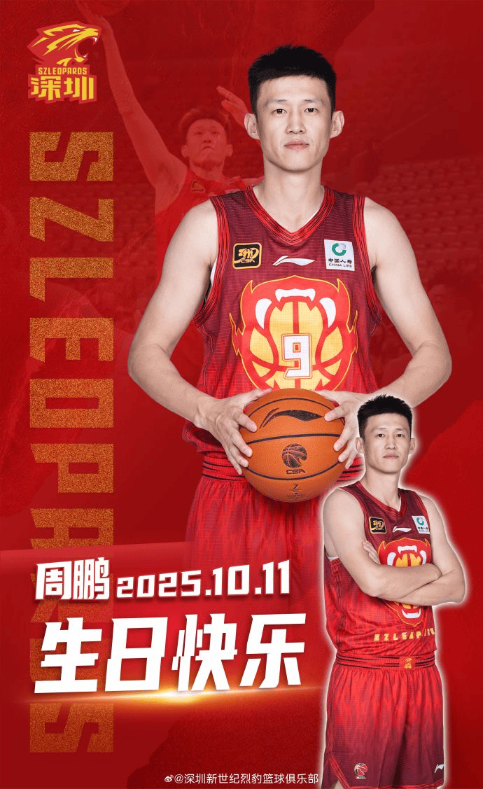 虎扑10月11日讯今日,深圳男篮官方更新社媒分享海报,祝福周鹏生日快乐。