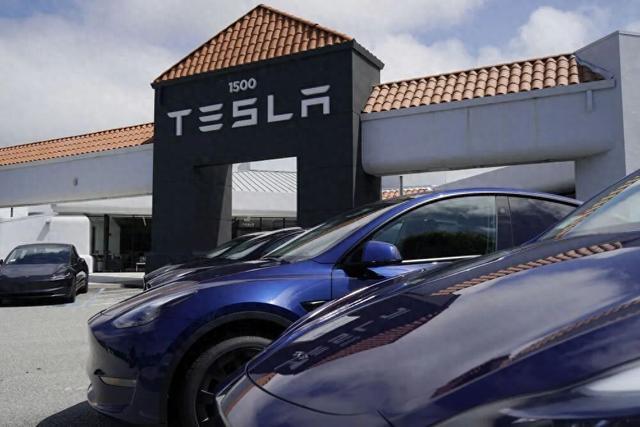 这是2024年4月15日在美国加州圣马特奥县拍摄的一家特斯拉汽车销售店。新华社发(李建国摄)