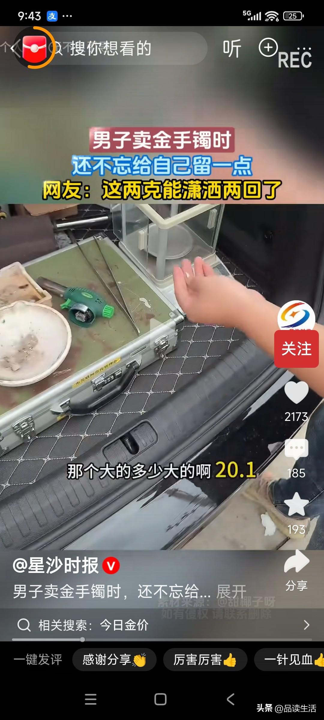 笑不活了!1000多一克,男子奉老婆之命,去金店卖手镯,店长要剪开验货,男子让剪大点,再大点,并拿出手机录下视/频,给媳妇发过去, “老婆你看啊,这个镯子20.1克,人家剪开了,要验货”! 接着又让店长称了下,剪掉的一截,2克, 并嘱咐店长,20.1克的钱,打到老婆的卡上,这2克的钱,转到“微/信”上, 2000多元,妥妥的成了自己的“小金库”! 店长笑着,“兄弟,还能这么玩啊?” 哈哈,这就是“家贼难防”吧! 当你有个强势的媳妇, 难保老公私下里,不打自己的“小九九”啊?