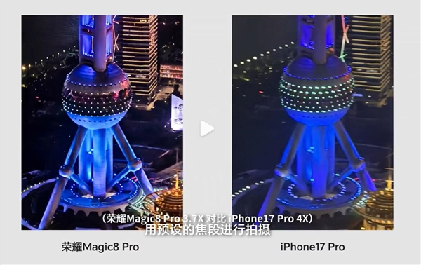 荣耀 Magic8 Pro 直升机夜拍赢了 iPhone 17 Pro,画面更清