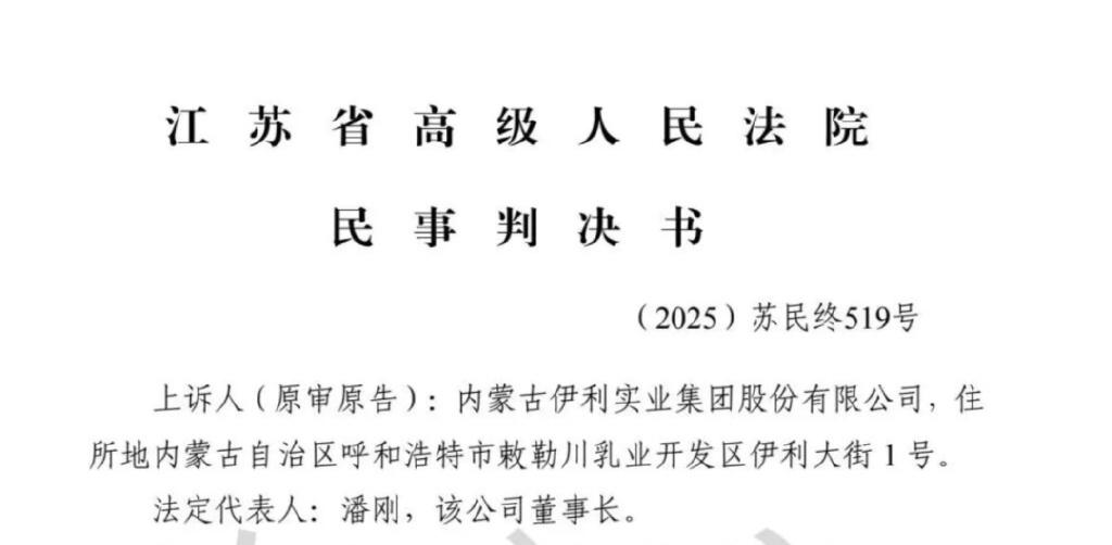 近日,江苏省高级人民法院就伊利与蒙牛之间的一起不正当竞争纠纷案作出终审判决((2025)苏民终519号)。