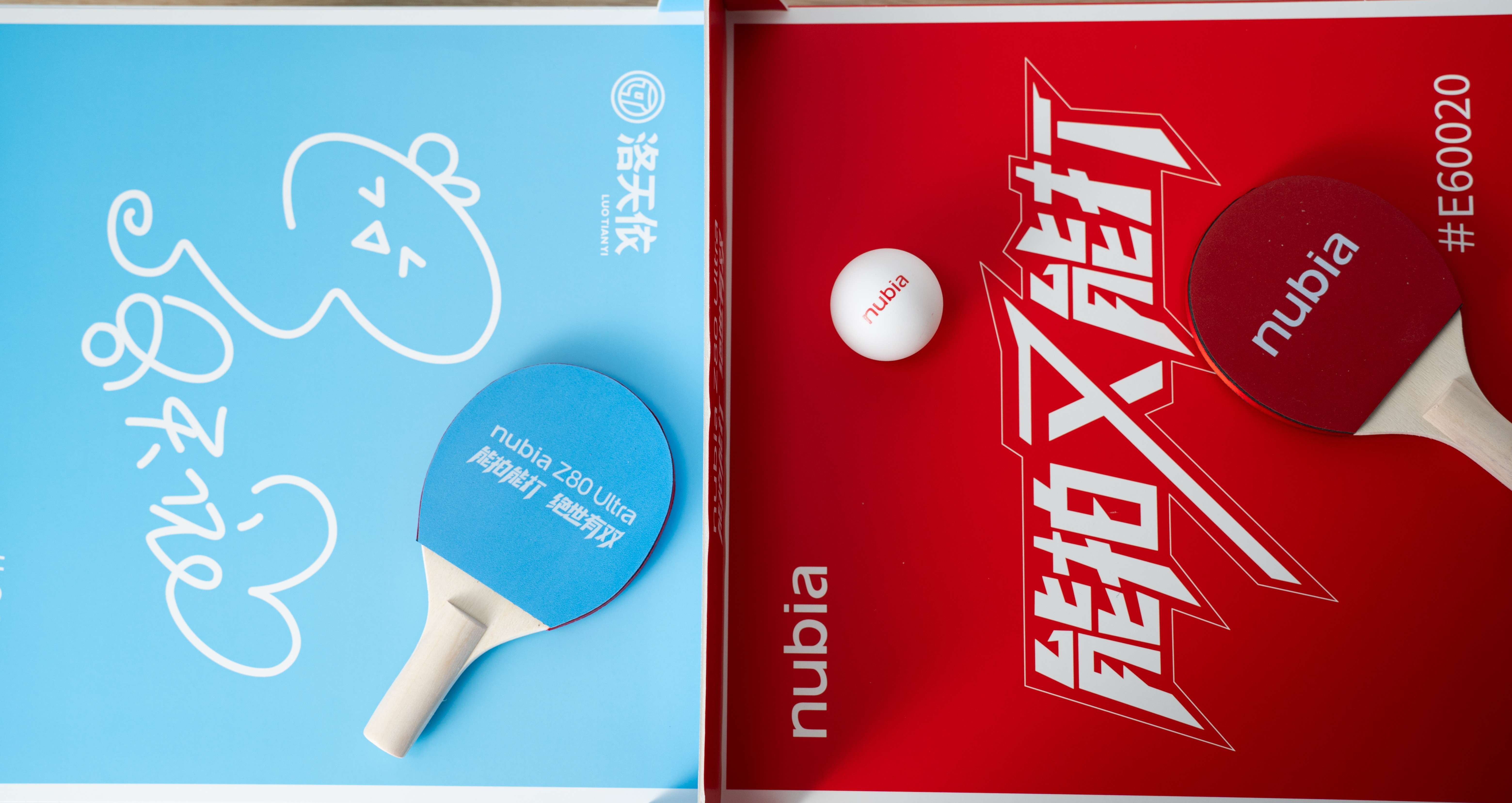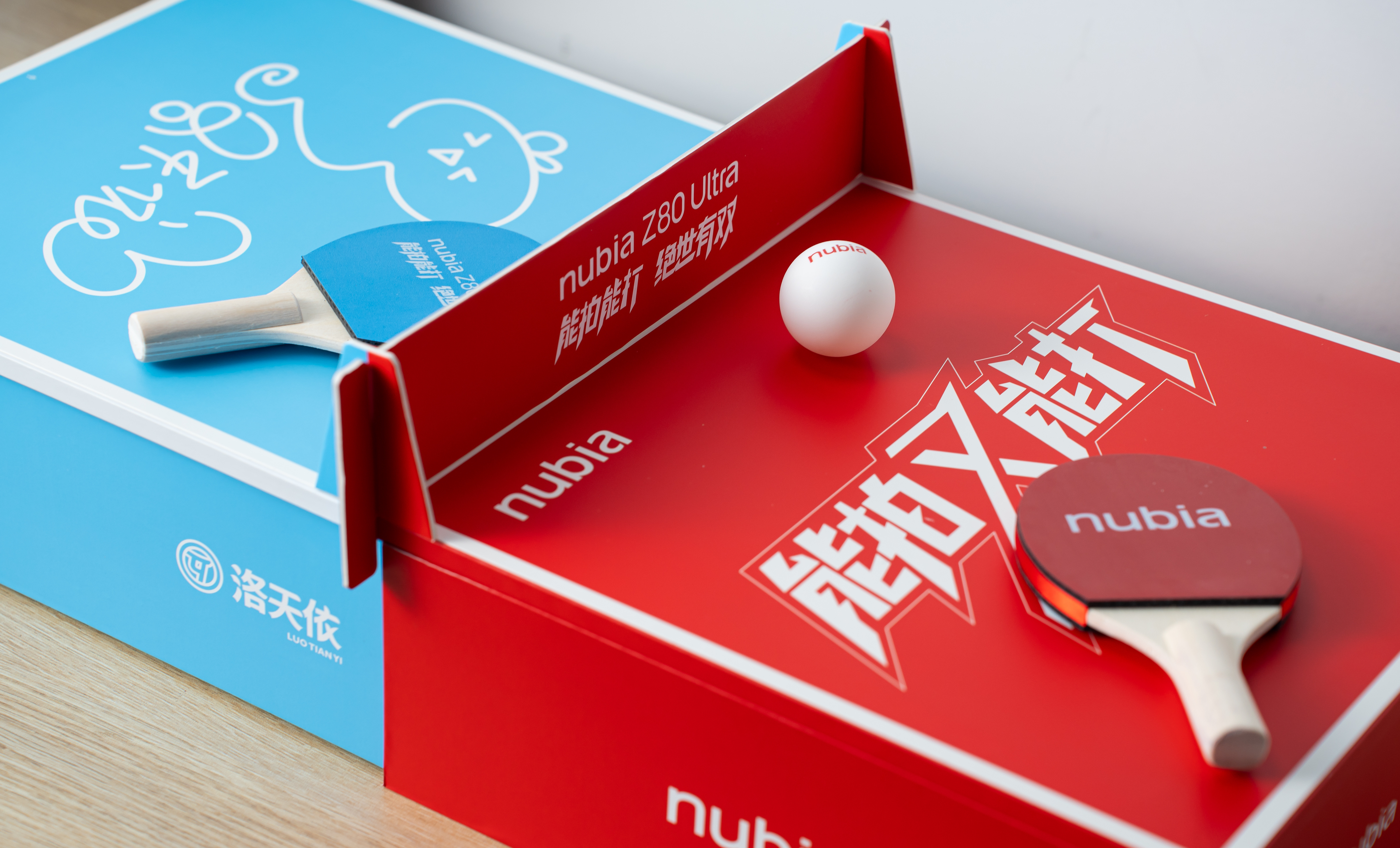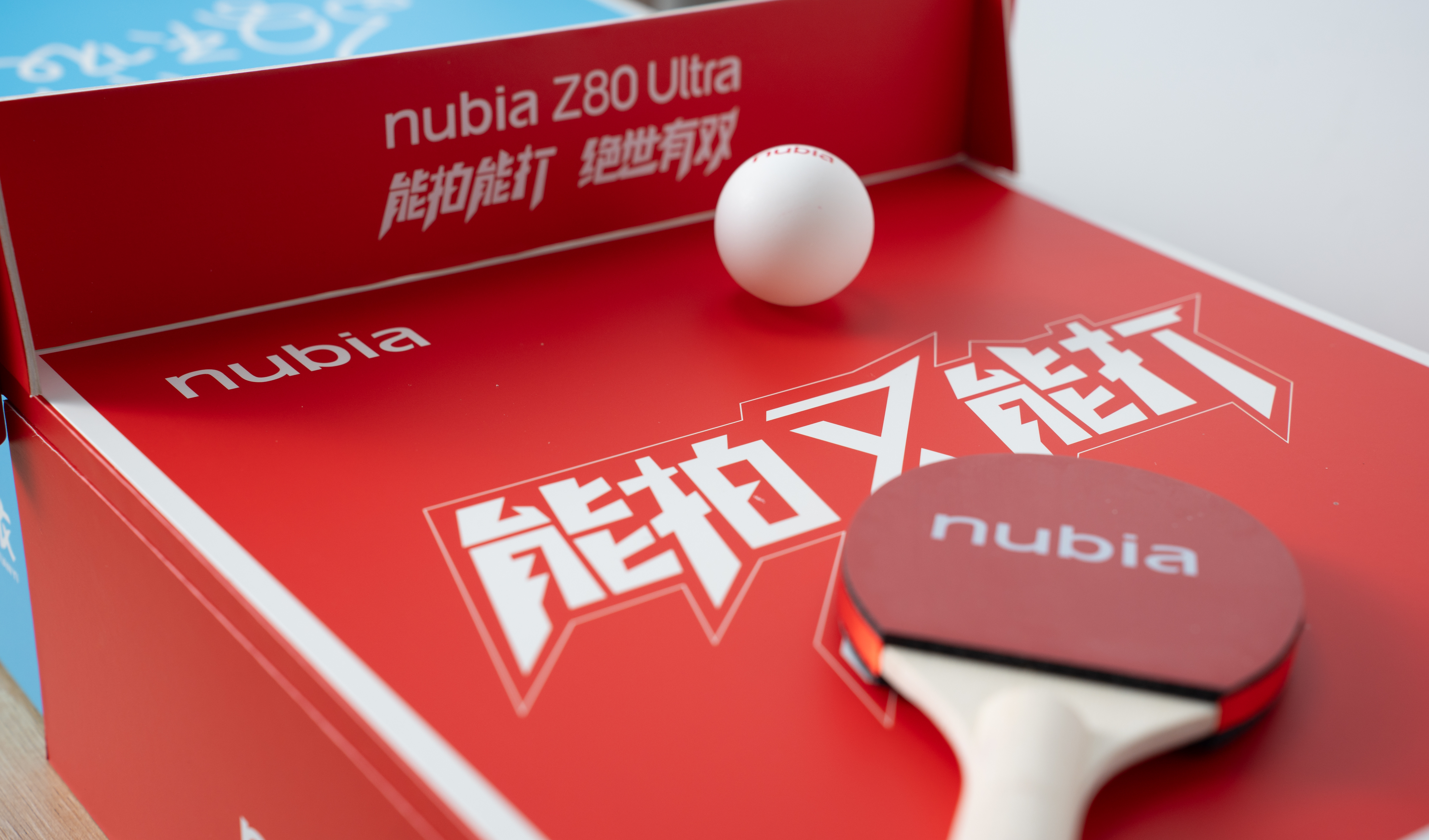 nubia Z80 Ultra新品发布会邀请函是定制的球拍和乒乓球,寓意着能拍能