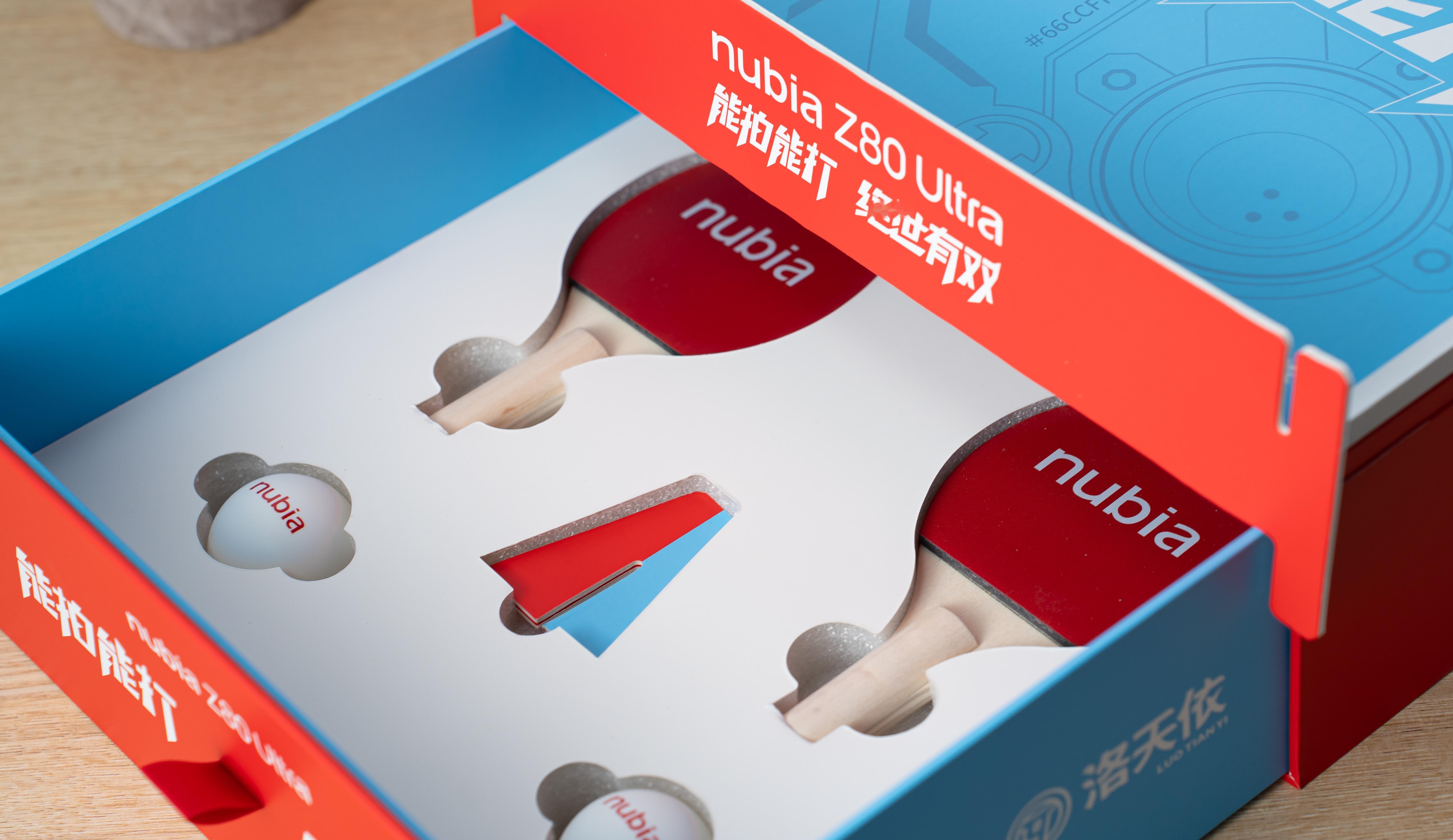 nubia Z80 Ultra新品发布会邀请函是定制的球拍和乒乓球,寓意着能拍能打,绝世有双[爱慕]