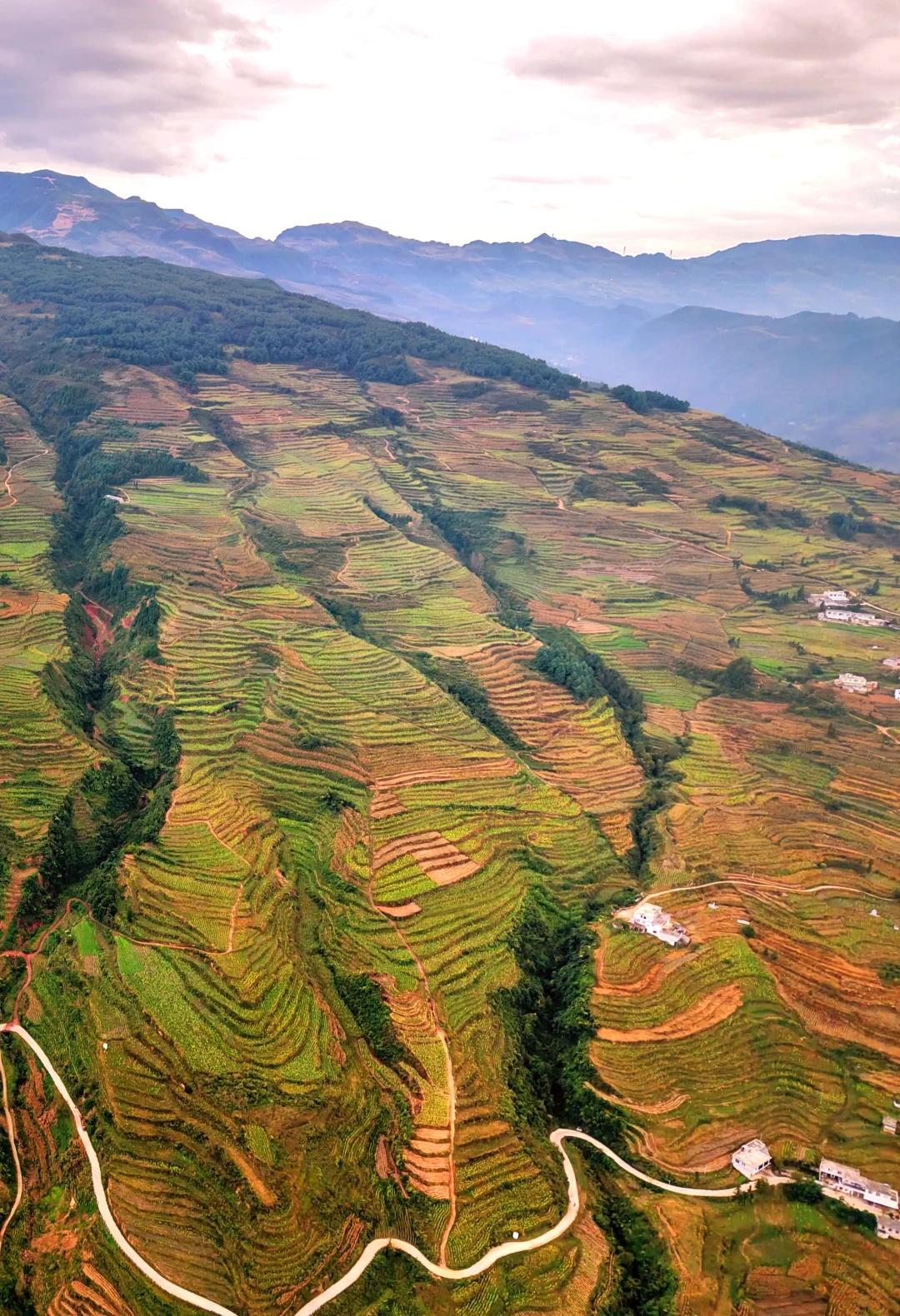云南未宣传的梯田景观,乌蒙山区的大地艺术 从昭通到威信的途中经过彝良县,卫星图上显示出一片梯田景观,怀着猎奇心前往一探究竟,结果有被惊艳到! 车辆盘山而行,随着海拔高度上升,壮观的梯田映入眼帘,一山连着一山,似乎没有尽头,尤其是俯瞰视角,随着光影变换,还呈现出不一样的色彩,将大地的艺术展现得淋漓尽致。 网上关于这里的信息很少,甚至连豆包都搜不出,是真隐秘!这里未开发,无游客,感兴趣的友友可以前往一观。 📍导航:彝良县海子镇黑沟 虽然来往车辆少,但是盘山路段,还是需小心慢行哦~ 成都周边游 彝良 云南 云南梯田 发现乡村之美 梯田 来拍照了 梯田美景 自驾游