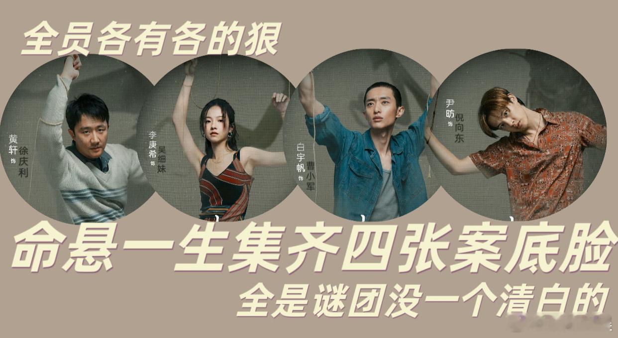 命悬一生集齐四张案底脸 黄轩这面相一看就背着重案,李庚希白宇帆尹昉也没一个省油的灯,四张案底脸同框,连空气都充满阴谋味道。迷雾剧场太会选角了,这波期待值直接拉满