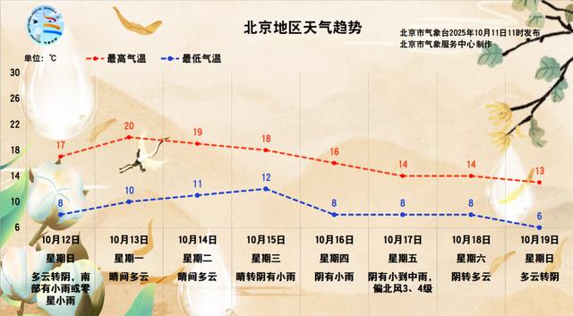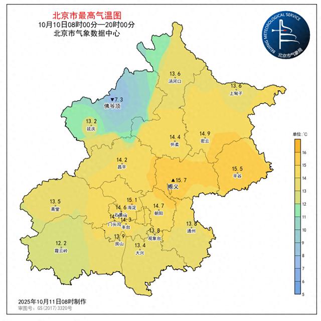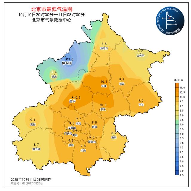 昨天(10月10日08时至10月11日08时),南郊观象台最高气温13.8℃(11:36),最低气温9.5℃(04:03)。