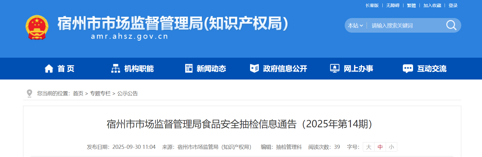 近期,宿州市市场监督管理局组织了市级23类食品的监督抽检。为保证广大消费者的消费知情权,现将抽检信息通告如下: