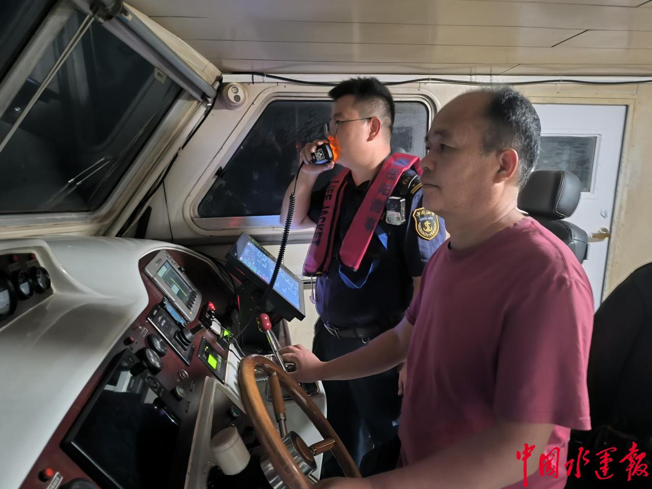 随后,在航经干支交汇三江口水域时,执法人员提前通过VHF高频电话与出洞庭湖船舶取得联系,及时发布客船动态,并重点提醒出湖船舶务必保持联系、主动进行有效避让,及早控制船速,共同确保了交汇区域的航行安全。在海巡艇的一路精心维护下,“世纪传奇”轮顺利驶过擂鼓台水域,标志着此次夜间禁航期内的特别护航任务圆满完成。