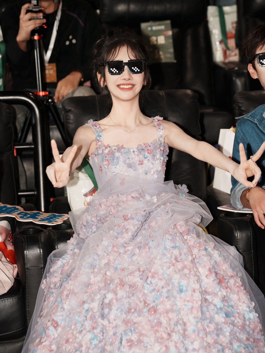 这居然是王影璐 藤蔓秋千上的她,紫色礼服裙随风轻摆,裙摆上的花朵像在轻轻颤动。她的姿态自然又灵动,仿佛随时会随风起舞,飘向远方。