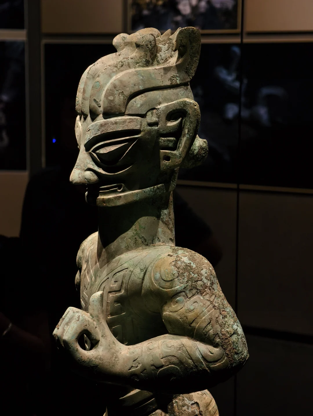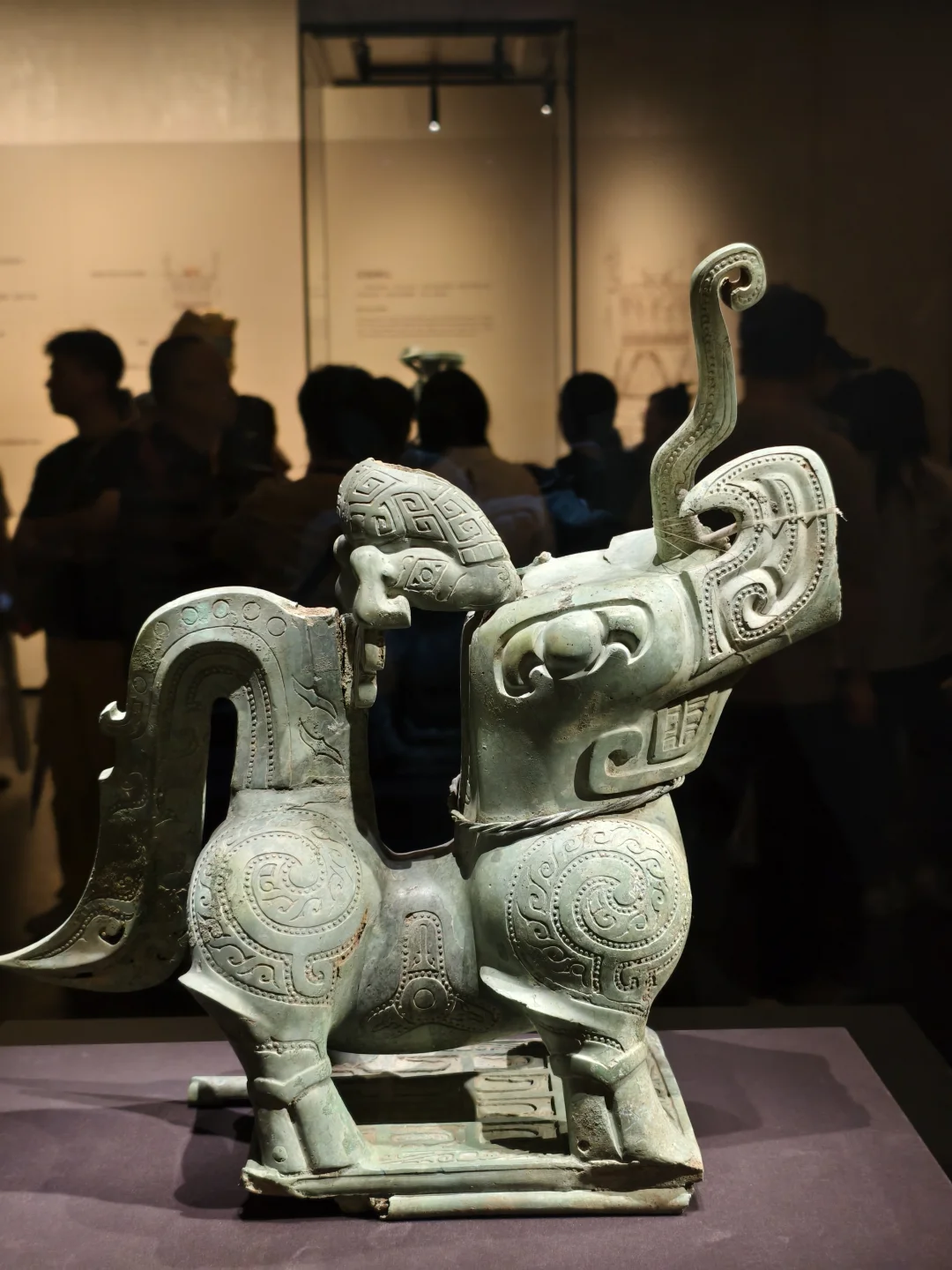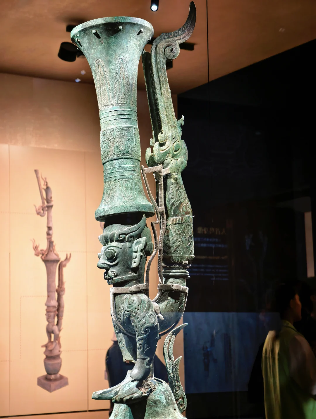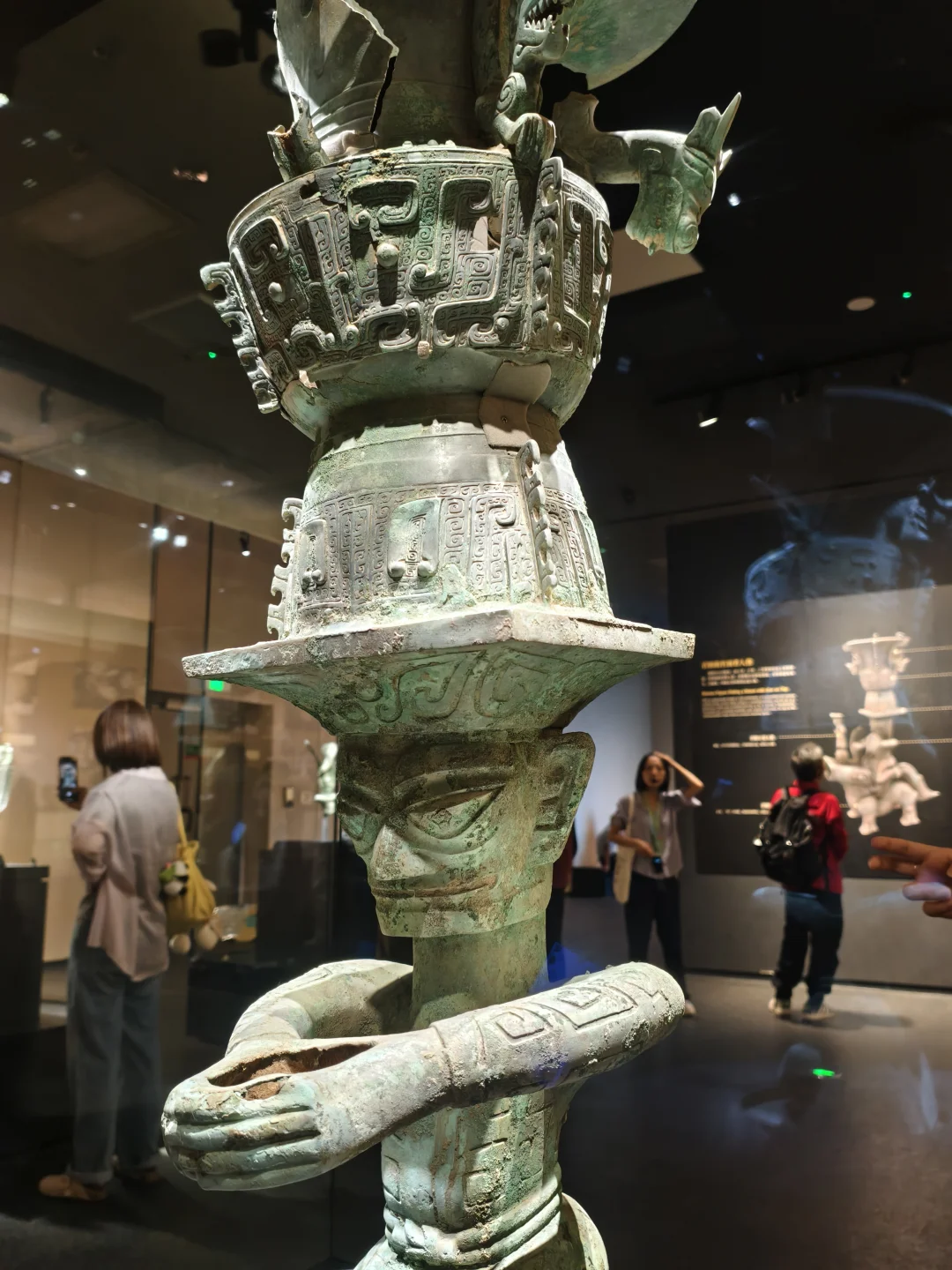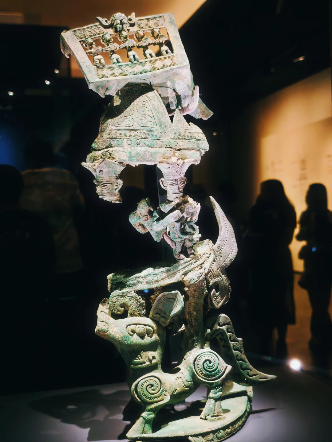 这件是真·细节炸裂,每一层都能看很久!真难想象怎么做出来的,三层堆叠,像一座三千年前的“立体舞台”。