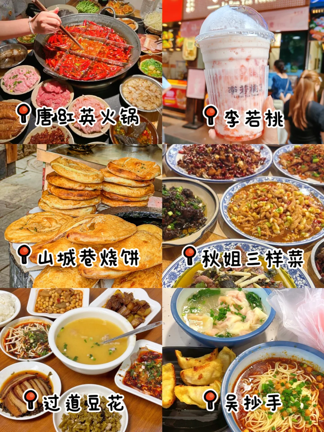 💯唐红英火锅💯李若桃💯山城巷烧饼铺💯秋姐三样菜💯过道豆花💯吴抄手