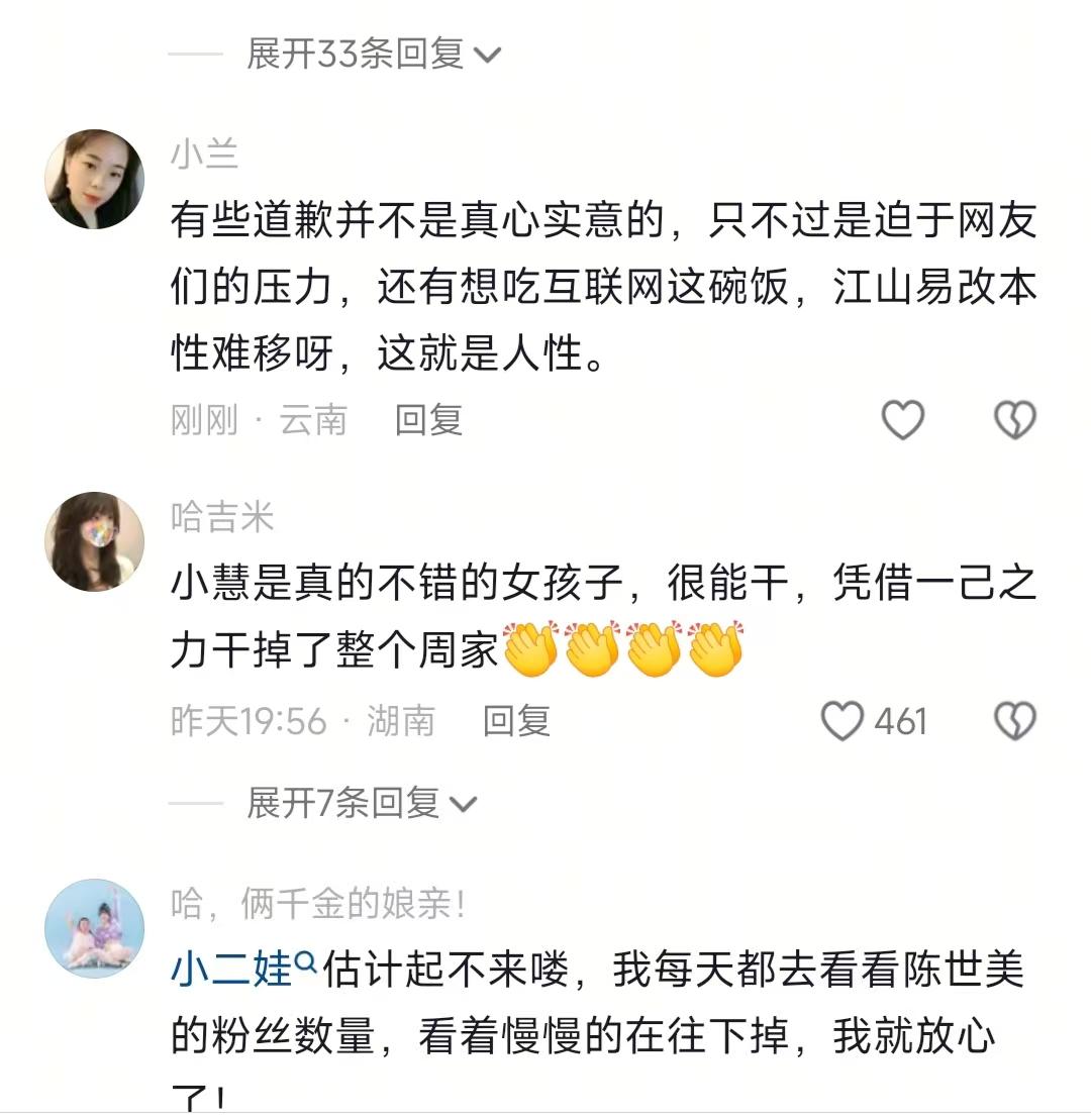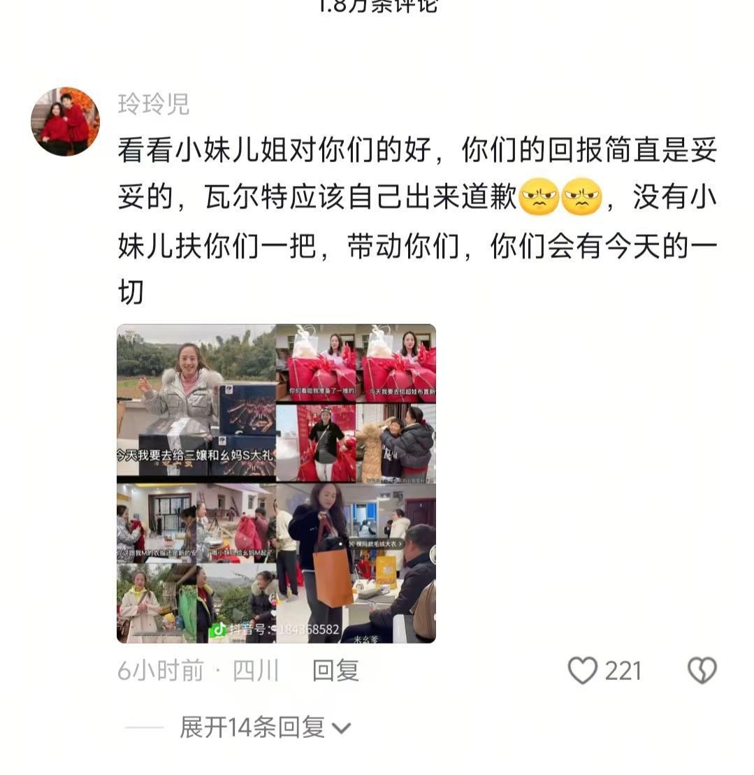 现在全网最后悔的男就是超娃了吧! 不是因为拍视频没人看也不是因为家庭不 合而是因为说错话了,“让小二娃管钱”只是调侃,现在正式道歉 前阵子我追小妹儿和小二娃的事儿,本来以为就是普通夫妻离婚,结果越看越懵——一会儿亲戚集体变脸,一会儿超娃替爹道歉,我晕,这剧情比我追的《家长里短》还上头!说实话,最开始我是冲小妹儿接地气才关注的,谁能想到好好的一家人,离婚后居然闹成这样,你说这事儿搁谁身上不郁闷? 小妹儿和小二娃刚离婚那会儿,我还觉得“好聚好散挺好”,结果没过四个月,小二娃订婚,幺爸幺妈、三孃全去了,这也就算了,幺爸还在视频底下说小妹儿坏话!这事儿就像村里办席,本来大家都笑脸相迎,结果有人突然掀桌子,尴尬得不行。然后超娃就出来说国庆停更,以后幺爸不出镜了——说实话,这操作我也理解,毕竟评论区都炸了,再播下去账号都得凉,但好好的一家人闹到这份上,真挺没意思的。 之前我刷到超娃停更公告下面的评论,有个网友说“我家亲戚也这样,看你有用就凑过来,没用就踩一脚”,瞬间就共鸣了!不管是网红还是普通人,遇到这种亲戚都挺膈应的,你说对吧?而且小妹儿之前待他们也不差,过年过节都送心意,结果离婚后就被这么对待,换谁不委屈啊? 国庆过了没几天,超娃终于更新视频了,一上来就说“让小二娃管钱”是调侃,不是真的,还替自己和超爸给小妹儿道歉。本来我想“这下该平息了吧”,但后来发现网友根本不买账,满屏都是“让超爸自己出来说”,不是吧?代道歉还能这么玩?有人说那啥“种啥因得啥果”,之前超爸说话没分寸,现在让儿子擦屁股,这不就是自己酿的苦酒嘛,咋整? 说真的,我之前也遇到过类似的事儿:我表哥跟人吵架没理,让我姑替他道歉,结果对方更生气了,说“犯错的人不露面,这是没诚意”。其实不管是网红还是普通人,认错这事儿就得自己来,让别人扛着算啥啊?超娃这波操作不仅没平息争议,反而让大家更反感了,你说是不是挺荒谬的? 就在超娃这边乱糟糟的时候,小妹儿直接带儿子回了娘家——我本来以为她会崩溃,结果娘家人直接给她办了生日宴,舅舅一句“未来有我在”,瞬间圈粉无数!太给力了有没有?然后更绝的是,她不仅没垮,还涨粉几十万,直播卖货也嘎嘎好,单场收入据说能到20万,这波逆袭真的巴适得板! 但话说回来,我后来发现个挺无奈的事儿:本来是好好的家庭悲剧,结果被平台算法推成了流量盛宴。超娃道歉视频播放量1500万,小妹儿“聊离婚”的片段点赞50万,这不就是把别人的痛苦当热闹看吗?无聊死了,真的假的?算法就不能推点正经内容吗? 之前我跟我妈聊这事儿,我妈说“不管有钱没钱,家里的事儿还是私下解决好”,现在想想真没错。小妹儿虽然靠这波热度赚了钱,但孩子没了完整的家;超娃虽然想救账号,但替父道歉反而招黑。说实话,不管是网红还是我们普通人,都别把家里的矛盾拿到网上博流量——毕竟亲情不是剧本,孩子也不是道具,你说是吧!