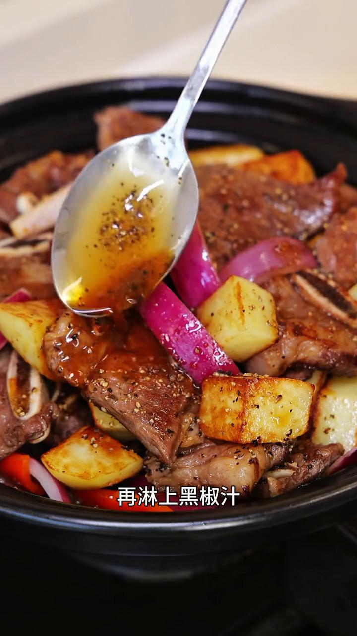 只需要5分钟,在家就能够做出媲美茶餐厅的黑椒牛仔骨,吃起来一点都不韧,又香又嫩。 ·土豆切小块先煮熟,然后再煎到表面金黄。 ·另外起锅来煎一下牛仔骨,好的牛仔骨是不需要腌制的,直接煎就行。最近我都在吃这一家的牛仔骨,一份里面是有两袋,一共两斤。原切的谷饲牛仔骨到货都是很新鲜的,解冻后不需要清洗,用厨房纸巾擦干表面就行。 ·煎的时候时间一定不要长,一面煎30秒到50秒就够了。翻面的时候就把配的黄油放进来,扒拉一下就可以关火了。 ·然后来调一个黑椒汁。我家哥哥现在上高中了,他在学校每餐定量8块钱的饭菜里面根本吃不到肉,所以周末回来我都会给他多安排一些他喜欢吃的肉类,像这个黑椒牛仔骨他就很喜欢吃。 ·另外起一个砂锅,把配菜炒香,煎好的牛仔骨跟土豆一起放上来,再淋上黑椒汁,然后盖上盖,大火焖一分钟。 一整个屋子都香喷喷的。这样做的牛仔骨吃起来一点也不韧,奶香奶香的,越嚼越香。我们家平时一周最少都要吃3顿牛肉的,喜欢的朋友也可以去试一下。 点赞关注收藏。