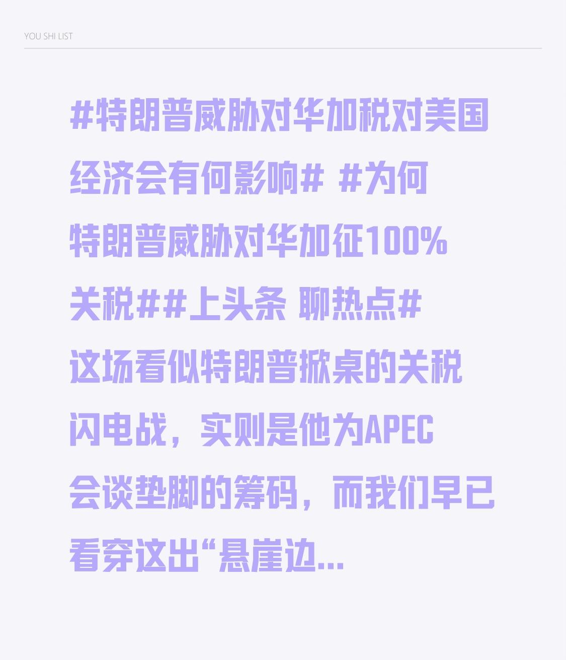 这场看似特朗普掀桌的关税闪电战,实则是他为APEC会谈垫脚的筹码,而我们早已看穿