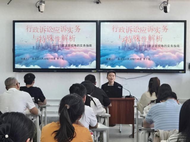 为进一步提升税务执法水平,强化司法与行政的良性互动,近日,昆明市盘龙区人民法院行政审判庭庭长李子欣受邀走进昆明理工大学莲华校区,为国家税务总局云南省税务局主办的“云南省税务系统依法治税暨公职律师、执法人员培训班”,开展行政诉讼专题辅导授课,为公职律师、税务执法人员送上满满的“法治干货”。