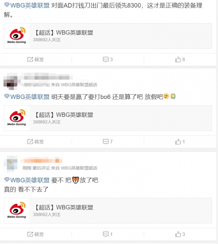 超话热议WBG惨遭BFX横扫;赶紧解散吧!为什么AD能被领先8300啊