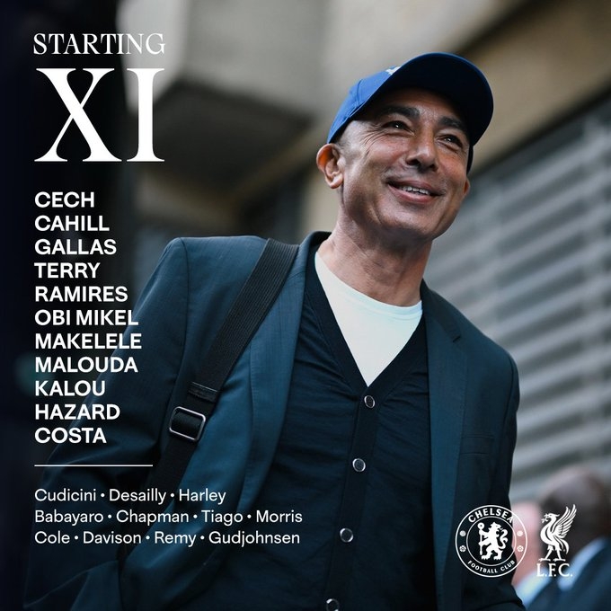 直播吧10月11日讯北京时间22:00,一场传奇友谊赛在斯坦福桥球场打响,由切尔西传奇队vs利物浦传奇队。切尔西方面,特里、切赫、阿扎尔、迭戈-科斯塔等名宿登场;利物浦方面,斯科特尔、贝纳永、雷纳等名宿出战。