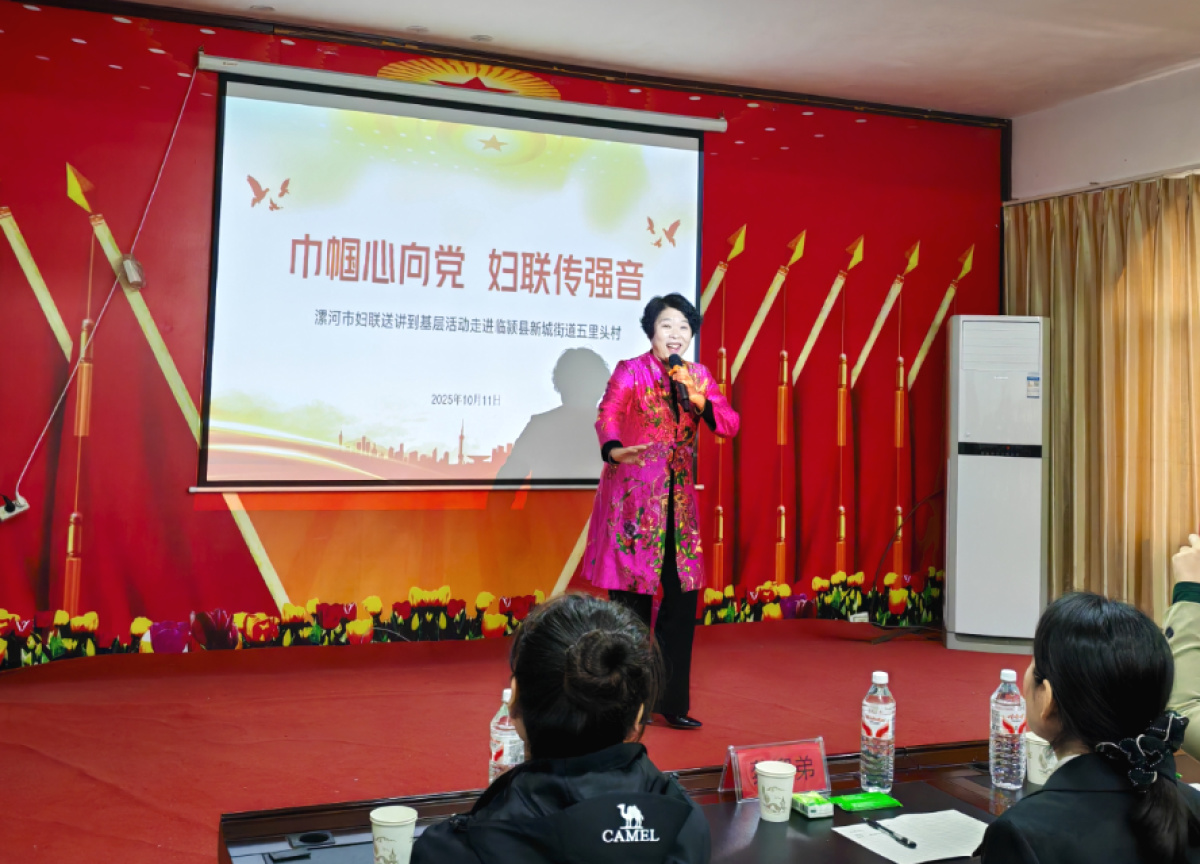 2025年10月11日,漯河市妇联“巾帼心向党妇联传强音”送讲到基层活动在临颍县新城街道五里头村顺利开展。市、县、街道妇联干部、五里头村妇女群众等50余人参加。