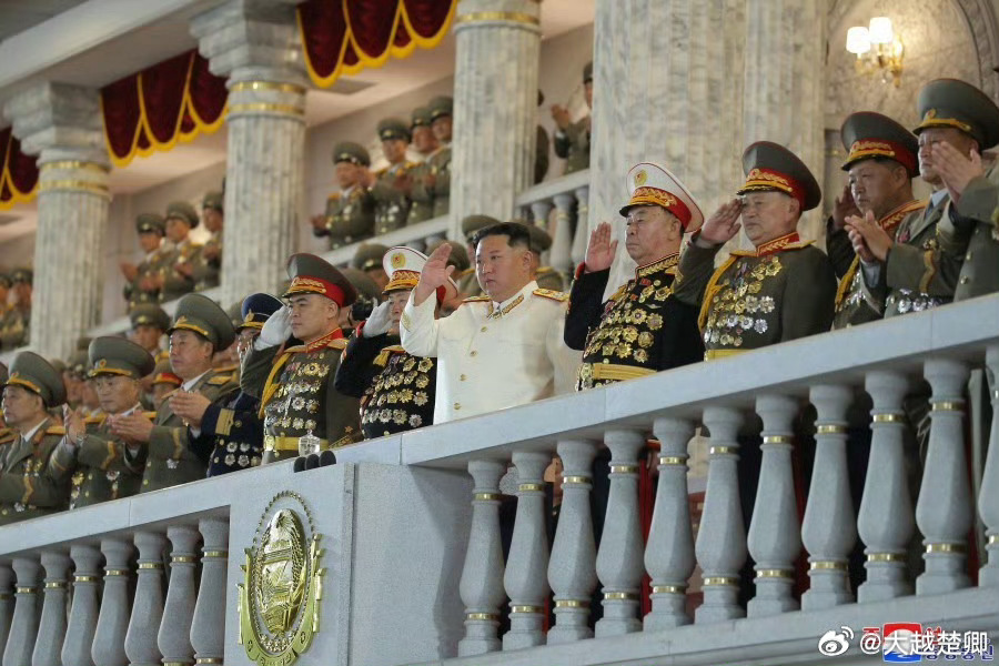 朝鲜貌似在观礼台给外宾安装了介绍阅兵情况的设备。图四是没有安装的旧照。