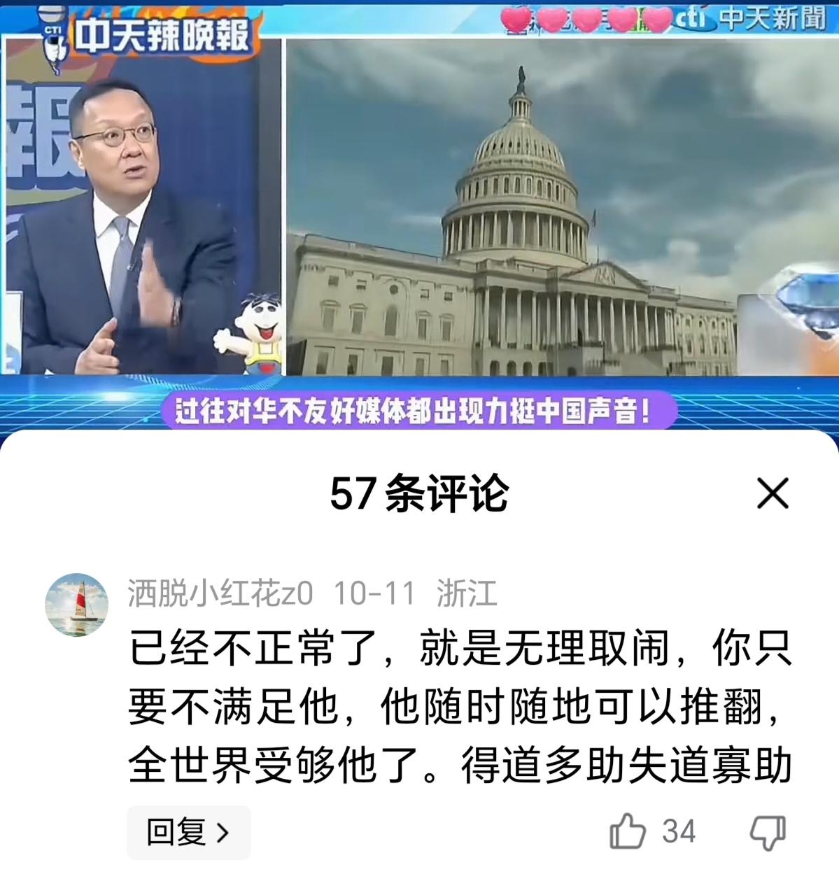 我敢肯定,全世界讨厌特朗普的人肯定不在少数,原因无他,他一上台就搞得全世界不得安宁,很多人因为他滥用关税大棒导致生活成本升高引起生活水平的下降,甚至弄得好多企业举步维艰,大家不讨厌他才怪。大家都想好好生活,都想和谐安宁的生活,他这么一乱搞,致使全世界很多企业的生产经营成本上升,利润下降,直接使得这些企业的工人收入也下降,然后物价还跟着上涨,大家的工作、生活因为他的胡作非为而受到影响,能不讨厌他吗?更为严重的是,他的胡作非为,别的国家竟然毫无办法,只能逆来顺受,令其嚣张气焰更甚,甚至变本加厉,已经严重威胁到全世界产业链供应链的安全,是可忍,孰不可忍?庆幸的是,咱们绝不惯着他,否则任由其胡作非为下去,这个世界不乱套才怪。