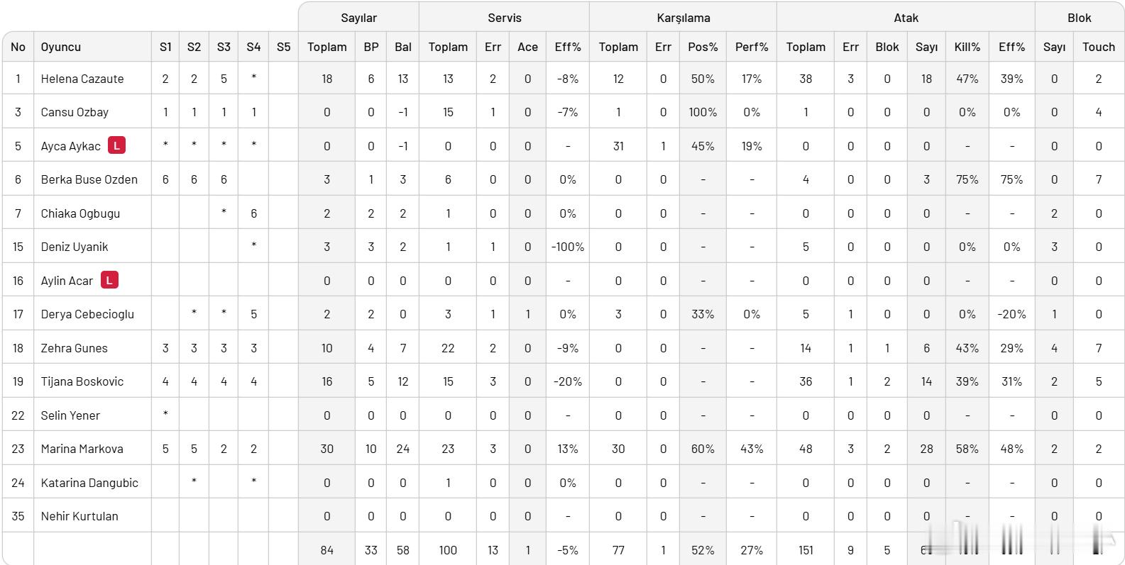 土耳其女排联赛,瓦基弗银行客场3-1泽仁体育,25-23/26-28/25-19/25-13;