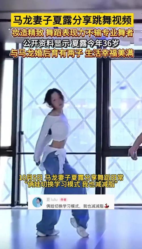 10月5日,马龙妻子夏露在社交平台分享舞蹈视频引热议。36岁的她妆容精致,舞姿流畅有力,卡点精准,被赞“不输专业舞者”。身为两个孩子的母亲,她身材纤细,状态饱满,配文“俩娃切换学习模式,我也减减脂”显生活智慧。此次分享打破“冠军配偶需低调”的刻板印象,获网友力挺“活出自我”。马龙之妻 马龙老婆