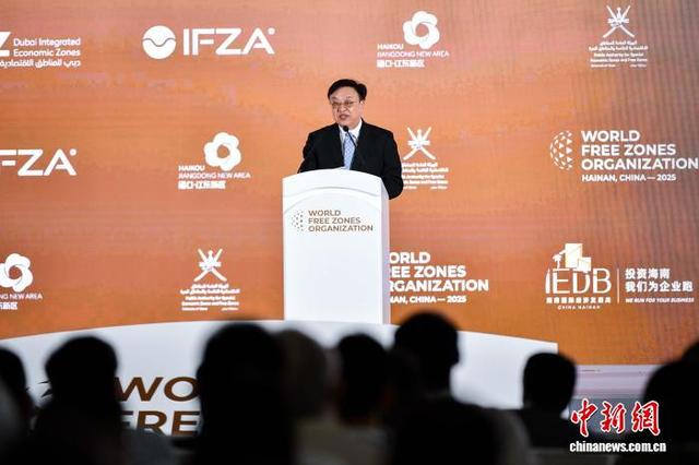 10月10日,第十一届世界自由区组织大会在海口开幕,海南省委书记冯飞出席开幕式并作主题演讲,期待与全球各自由区持续加强交流合作,推动全球要素资源优化配置,更好助力经济全球化。中新网记者骆云飞摄