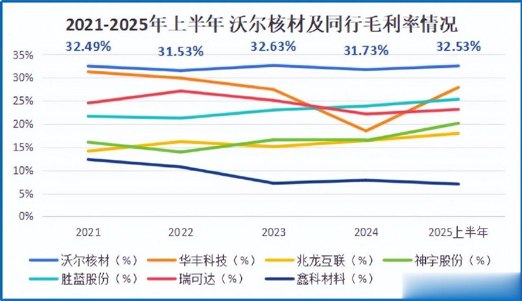 2021-2025年上半年,公司毛利率维持在30%以上,与同行华丰科技、兆龙互联等拉开了不小的差距。