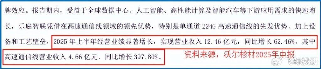 2025年上半年,公司生产的224G高速通信线已实现量产,多通道1.6T高速通信线也已完成了重要客户的验证工作。