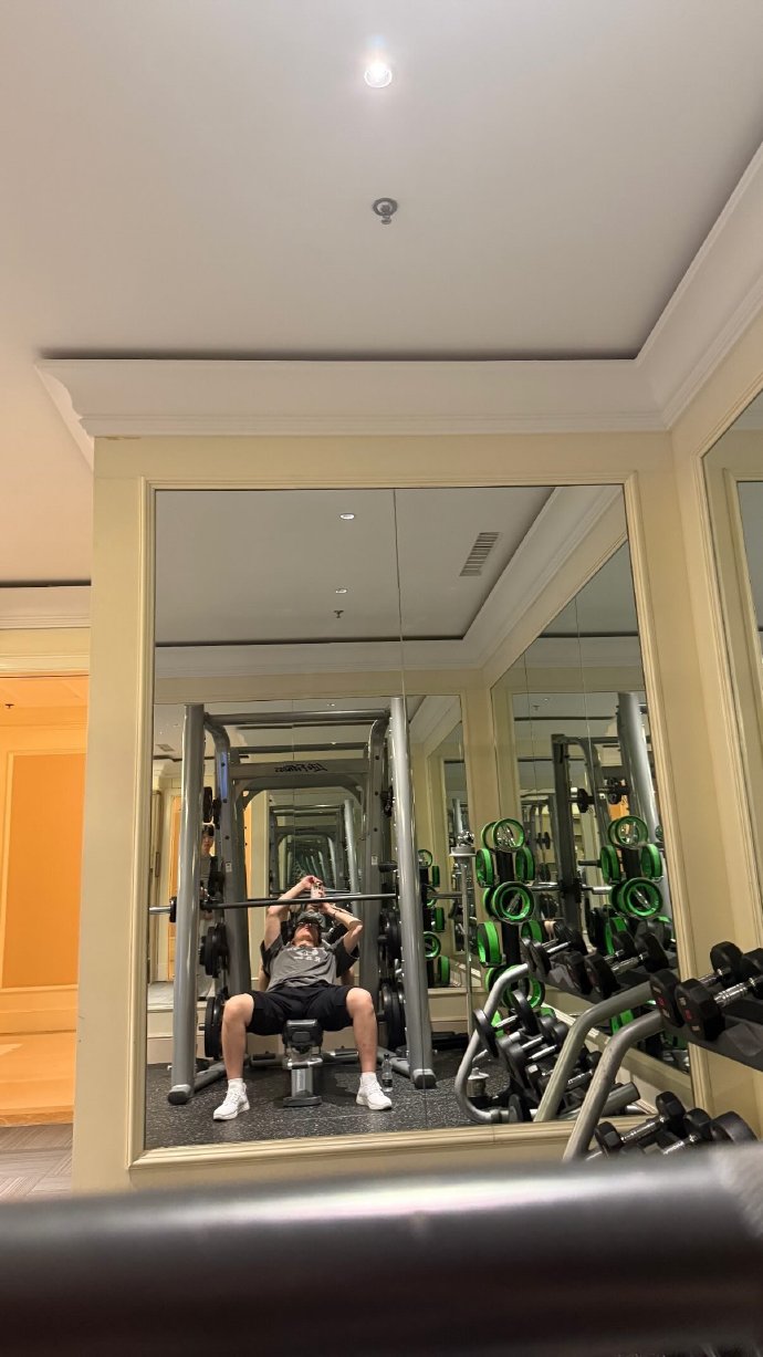 虎扑10月12日讯今日Ruler选手深夜更新健身动态,而Chovy在角落里看着。