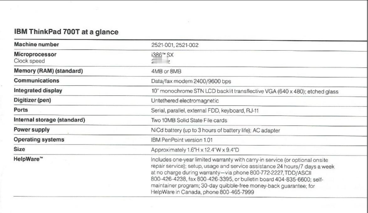 1992年的IBM平板:ThinkPad 700T20MHZ的386CPU,4M
