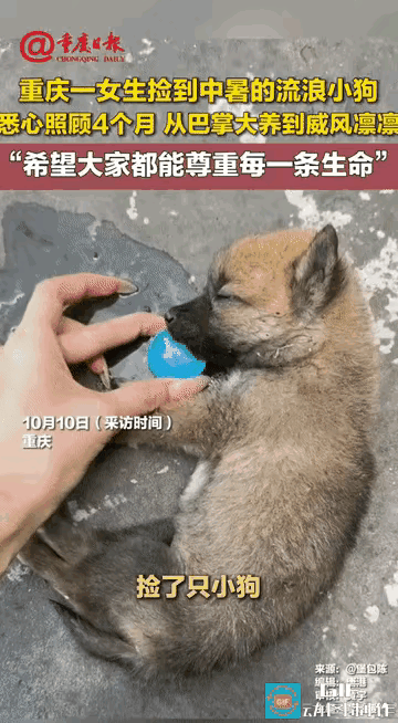 “被爱会疯狂长出血肉!”重庆这位女生,街头偶遇中暑的流浪小狗,当时它奄奄一息,小得可怜。 女生心生怜悯,把它带回了家。 六月的重庆酷热难耐,女生出门办事瞧见路边那团小黑影,走近才看清是瘦骨嶙峋的小狗,虚弱得快不行了。 她没丝毫犹豫,直接带它回家。 照顾过程很辛苦,小狗起初只能喝稀释羊奶粉,女生精心照料,定闹钟喂饭、擦身。 四个月后,小狗从1斤飙到12斤,精神抖擞。 这哪是什么神奇变化,分明是女生用爱一点点滋养的。 爱,对宠物平常,却是流浪动物的救赎。 如今小狗定是满心依赖女生。生活中,爱就是有这般力量,能让生命焕发光彩。