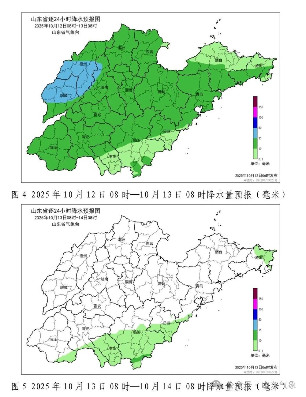 天气实况与预报(10月12日发布)| 13日-14日山东降水减弱