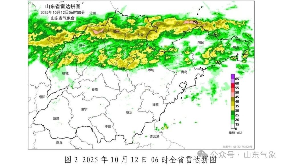 目前,降水回波主要位于聊城、德州、济南、滨州、淄博、东营、潍坊、青岛、烟台和威海(图2)。