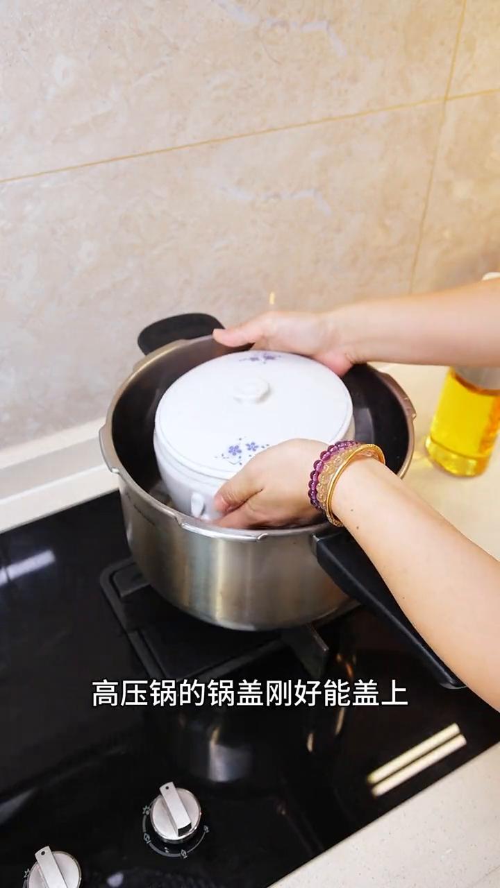 趁着老大在家,我又给他安排了一盅汤。今天炖的是一滴水都不用放的滴露鸭,这样子做不光有汤喝,鸭肉也咸香入味,挺好吃的。 ·我用的是半只小母鸭,给它砍成大块,然后来腌一下,加上姜跟盐抓匀,腌一个小时,这样子鸭肉它就有个底味,炖完了之后很香的。 好多姐妹跟着我买了这个一汤炖盅,让我多出几期炖汤的视频,今天这个汤也可以参考一下。这次我用的是1.8升的,一家人喝都够了。 ·炖盅底下放上几片黄芪、几片党参,腌好的鸭肉放在一沓里面,这样子鸭肉它泡不到水,吃起来就会更加的咸香。 ·这个尺寸的炖盅比较高,我用的是炖盅原配的蒸架,高压锅的锅盖刚好能盖上。为了好展示,我就还是用了这个有提手的蒸架。我没有放一滴水的,鸭肉它本身蒸出来的水分,而全漏到这下面了,可以想象这一口汤得有多鲜甜。 鸭肉可以当菜吃,有汤又有肉。 喜欢的姐妹记得点赞,收藏起来试一下。