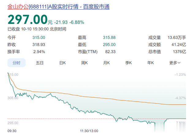 市场方面,10月10日,金山办公收报297元/股,总市值1376亿元。