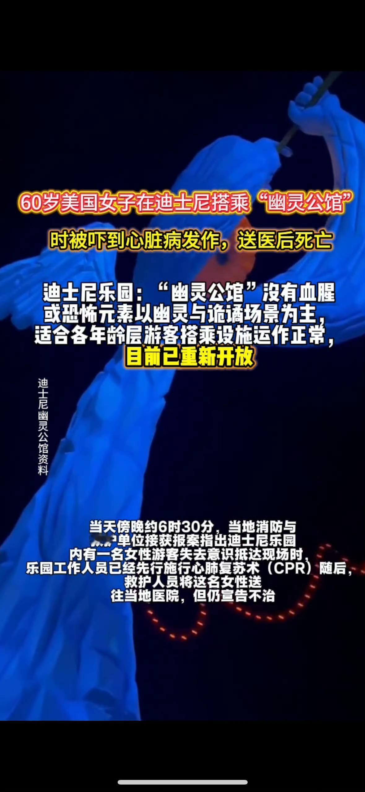 迪士尼鬼屋夺命背后:我们追捧的“安全刺激”,正在悄悄吞噬安全感 当“迪士尼”“鬼屋”“猝死”三个词撞在一起,多少人的童话滤镜碎了一地?60岁的玛莎(化名)怎么也不会想到,自己精心规划的迪士尼之旅,会在“幽灵公馆”的昏暗走廊里戛然而止——没有血腥特效,没有设施故障,一场被标注“全家适宜”的游乐项目,最终成了她人生的终点。 这起悲剧最刺痛人的,不是意外本身,而是我们对“刺激”的集体误判。我们总以为,只要设施贴了“安全认证”,只要场景是“人造的恐怖”,就能把风险牢牢攥在手里。就像坐过山车时喊着“好怕”,却会下意识握紧安全杆;进鬼屋前笑着说“都是假的”,却还是会被突然跳出的“幽灵”吓出冷汗。这种“可控的恐惧”,成了成年人解压的狂欢,可我们忘了,身体的应激反应从不会配合“演戏”。 玛莎的家属在采访中提到,她有多年高血压,但看着园区地图上“幽灵公馆”旁的“全年龄友好”标识,便放下了戒心。这不禁让人追问:那些印在门票背面、藏在项目入口角落的“基础病患者慎入”,到底是风险提示,还是免责声明?当工作人员微笑着引导游客排队,有没有人会主动询问“您最近身体还好吗”? 更值得深思的是评论区的撕裂。有人怒批迪士尼“重开项目冷血”,认为应该暂停运营彻查;也有人反驳“自己不看提示怪谁,总不能让乐园为每个人的健康负责”。可真相从来不是非黑即白——迪士尼的急救流程确实规范,工作人员第一时间做了CPR,但“事后补救”再及时,也抵不过“事前预防”的缺失。 类似的隐忧藏在更多地方:商场里突然响起的促销爆鸣声,电影院里惊悚片的突兀音效,甚至网红餐厅里故意营造的“沉浸式暗黑氛围”。我们一边追求“刺激感”带来的新鲜感,一边又默认“商家会为安全兜底”,这种矛盾的心态,正在让我们的安全感变得越来越脆弱。 玛莎的悲剧不该只换来一阵惋惜。下次再面对“安全刺激”的诱惑时,或许我们该多问自己一句:我真的了解身体的底线吗?而那些贩卖“情绪体验”的商家,更该明白:比起打造震撼的场景,把“风险提示”从角落挪到显眼处,把“全年龄友好”的模糊表述换成更精准的健康建议,才是对生命最基本的敬畏。 你有没有过被“看似安全”的场景吓到不适的经历?你觉得商家该如何平衡“刺激感”和“安全感”?评论区聊聊你的看法,也给身边人提个醒——别让追求快乐,变成一场赌上健康的冒险。迪士尼游玩秘诀 上海迪士尼事件