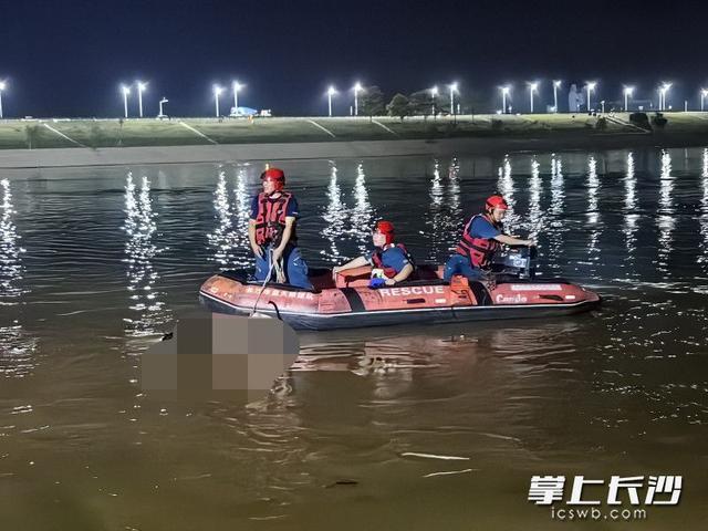 晚上9时,长沙市蓝天救援队的队员们抵达现场,此时120、110、119等相关部门也已到达现场。夜色下,河面漆黑,闸口水流湍急,水下地形复杂,搜救难度大幅增加。在消防部门的照明设备支持下,队员们加大声呐探测力度,分组进行拉网式排查,其他部门也给予了有力协助。晚10时26分,队员们完成第一名溺水者的搜救。晚11时17分,第二名溺水者的搜救工作也顺利结束。完成后续移交工作后,深夜的灯光下,队员们已显疲惫。